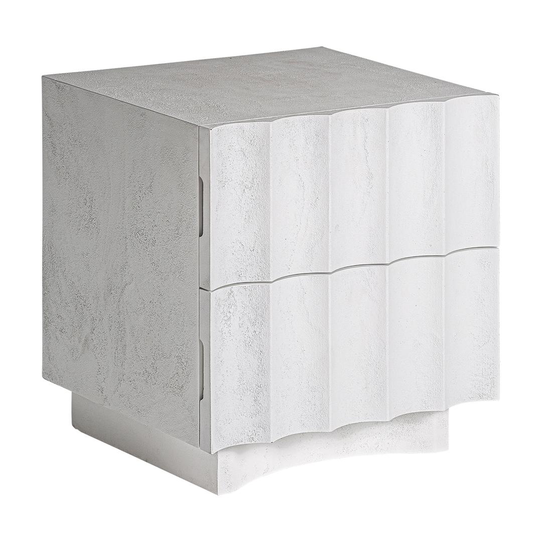 Журнальный столик Mulcey белого цвета в современном стиле. Изготовлен из смолы в сочетании с гравием и древесиной DM.