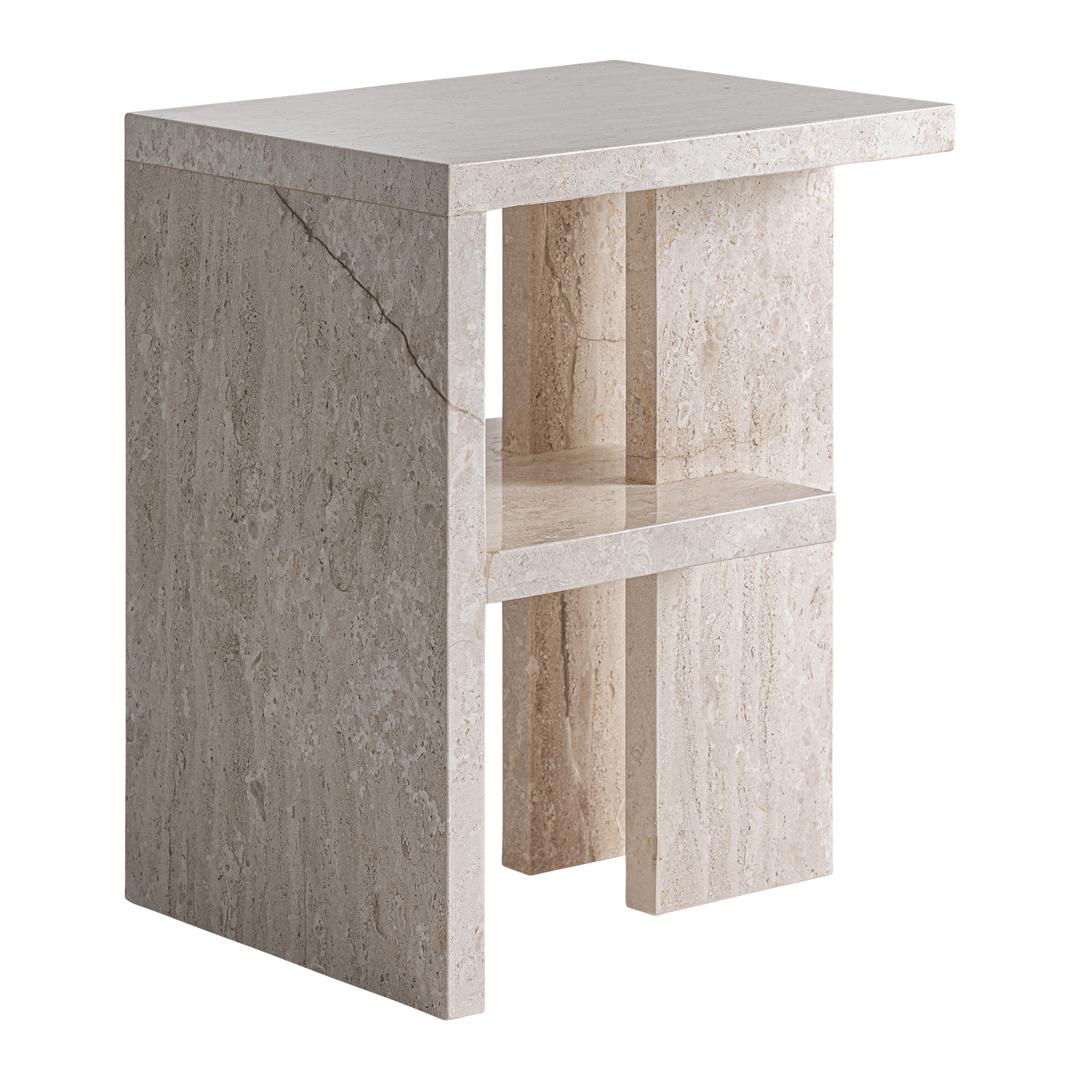 Прикроватная тумба Korba от VICAL переосмысливает классический стиль, предлагая изысканный архитектурный подход. Изготовленная полностью из бежевого мрамора с прожилками, она выделяется прочностью материала и естественной элегантностью текстуры. Сбалансированная, структурная конструкция делает её эффектным элементом интерьера для спален в жилых домах и гостиничных проектах, стремящихся к вневременной изысканности и использованию высококачественных материалов. Ширина: 40 см, Глубина: 35 см, Высота: 51 см
