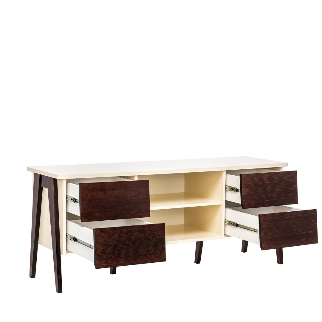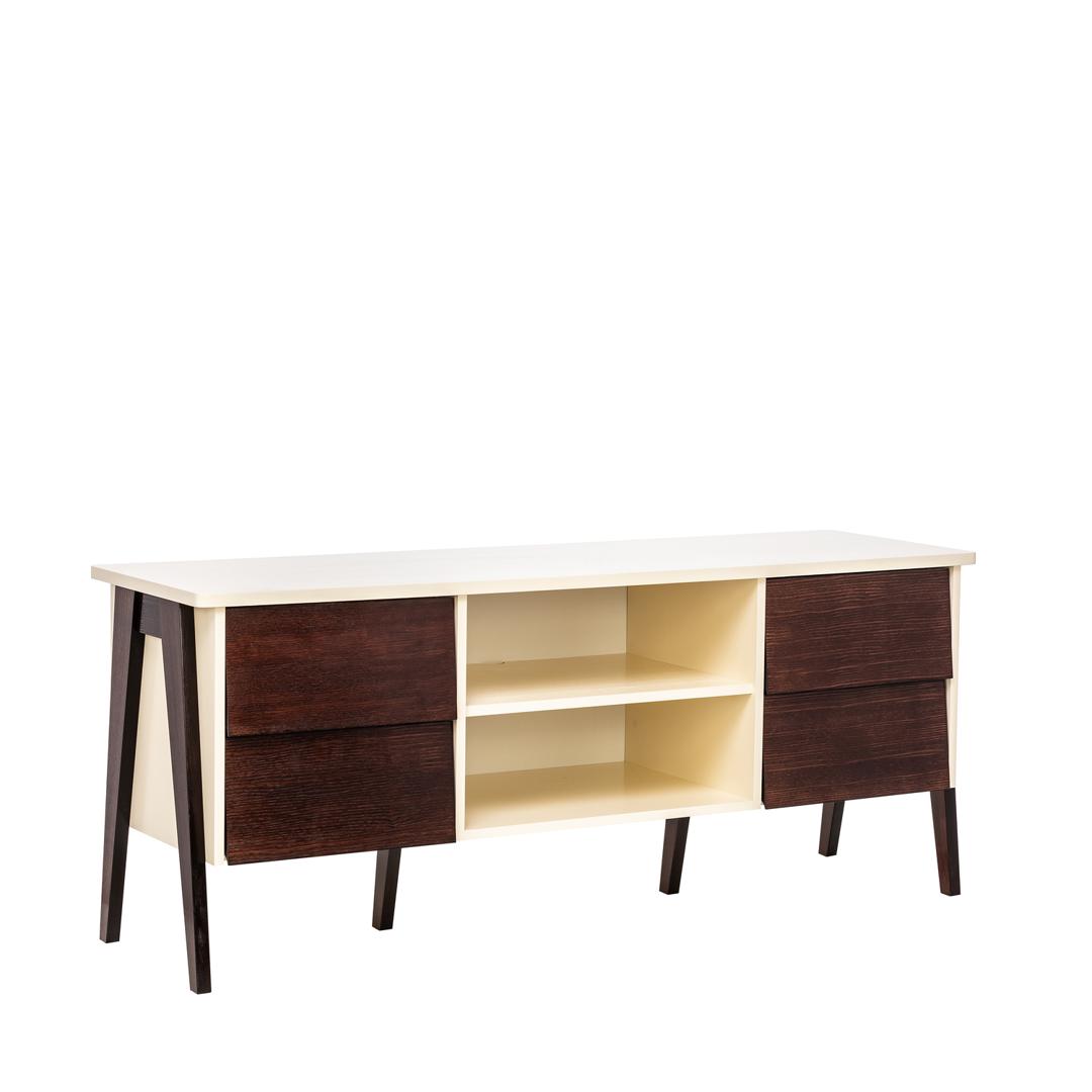 Акценты в новой модели ТВ-тумбы расставлены правильно – экологичные материалы, мягкий дизайн и прочный каркас. В основе продукта заложен принцип функциональности для комфортного ежедневного использования. Конструкцией предусмотрена открытая секция для техники с задней стенкой и вместительные ящики с плавным закрыванием.
