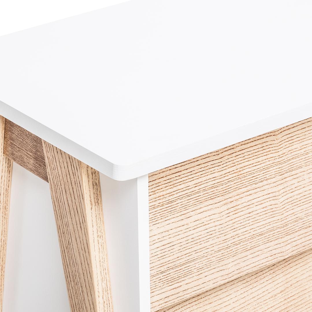 Акценты в новой модели ТВ-тумбы расставлены правильно – экологичные материалы, мягкий дизайн и прочный каркас. В основе продукта заложен принцип функциональности для комфортного ежедневного использования. Конструкцией предусмотрена открытая секция для техники с задней стенкой и вместительные ящики с плавным закрыванием.