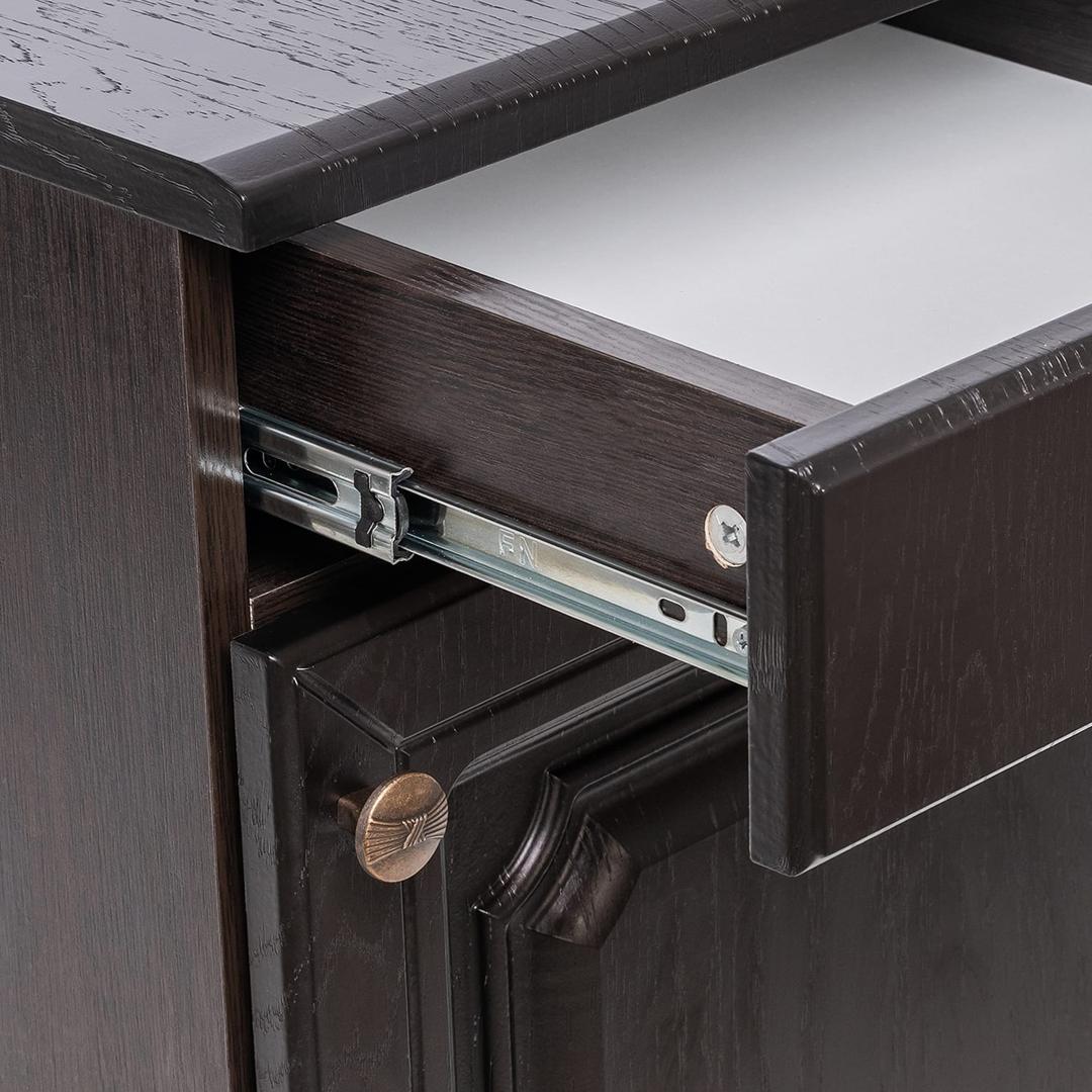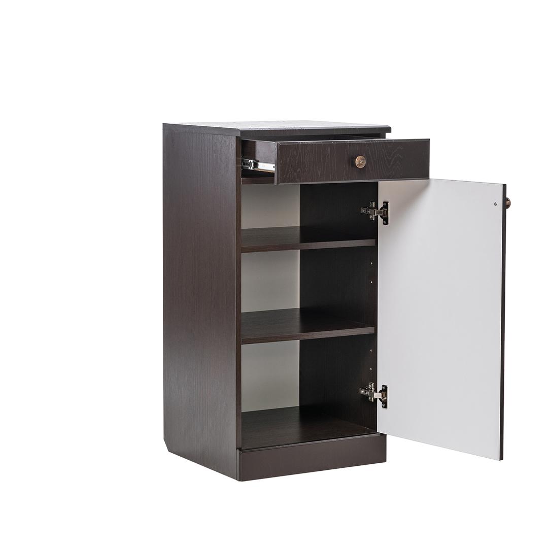 Вместительная тумба Локи 3 с выдвижным ящиком и полками, спрятанными за распашной дверцой.