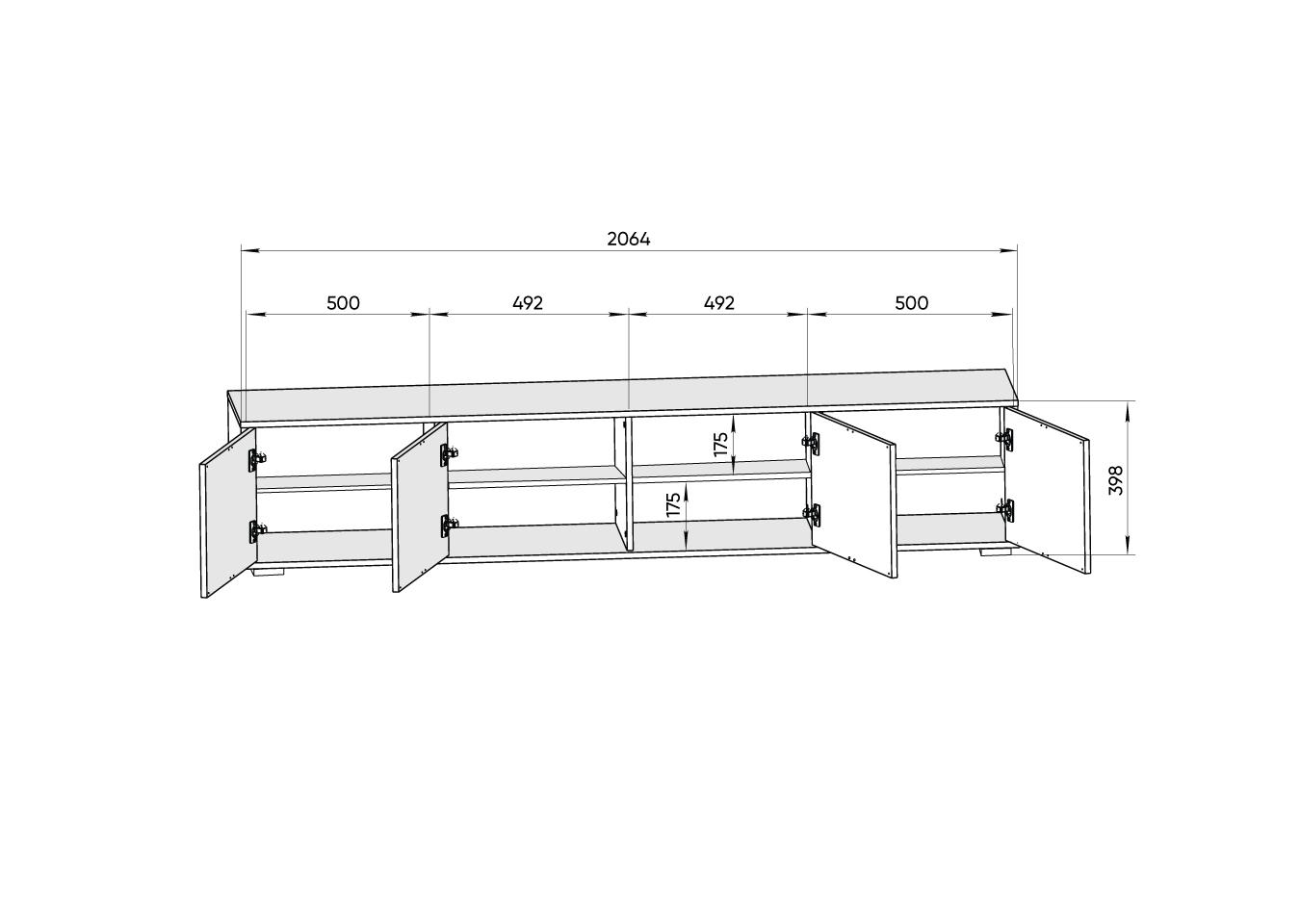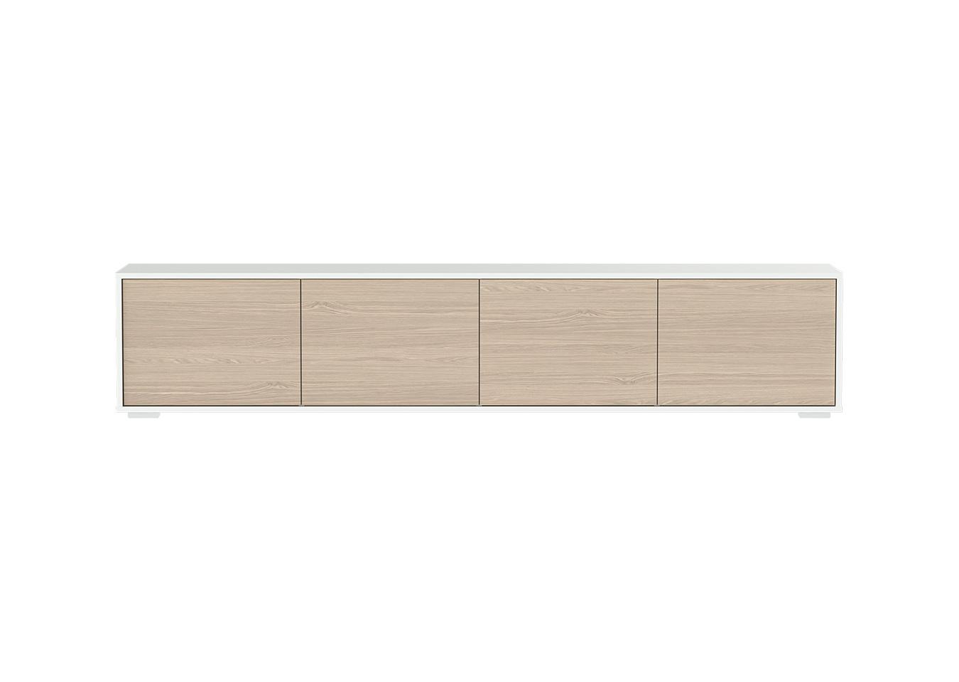 Тумба Hub 4 двери напольная на низких ножках (белый, натуральный) Высота: 41,8 см Ширина: 206,4 см Глубина: 40,5 см Корпус: ЛДСП Фасады: шпон дуба Ножки: бук