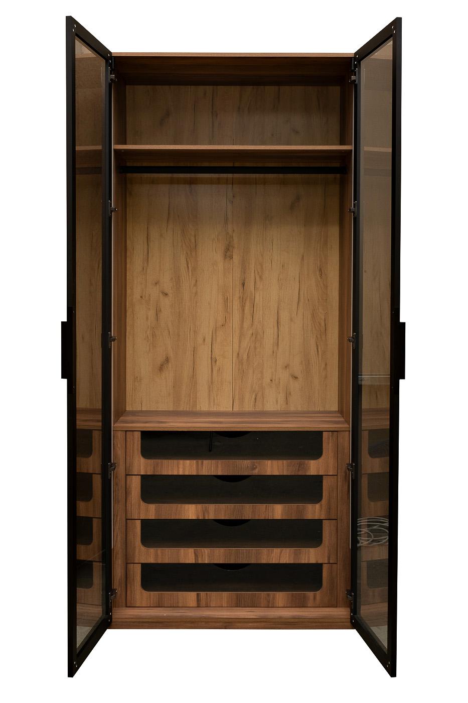 description-full - Стильный шкаф с выдвижными ящиками серии ALTO прекрасно справится с хранением посуды, книг, документов, одежды, техники и прочих вещей. Это практичное современное решение, которое органично впишется в пространство гостиной, столовой, спальни, прихожей, рабочего кабинета. Двухдверный шкаф из ЛДСП легко сочетается с другой мебелью в стиле ар-деко, неоклассики, минимализма благодаря нейтральному цвету древесины. Прозрачные стеклянные дверцы придают визуальной легкости конструкции, а ящики позволяют скрыть содержимое от посторонних. Garda Decor предлагает купить шкаф цвета дуб из наличия или изготовить под заказ. Складская программа.Шкаф c выдвижными ящиками, дверцы стекло (ЛДСП Дуб Барокко Янтарный К536RW, тм Kronospan)