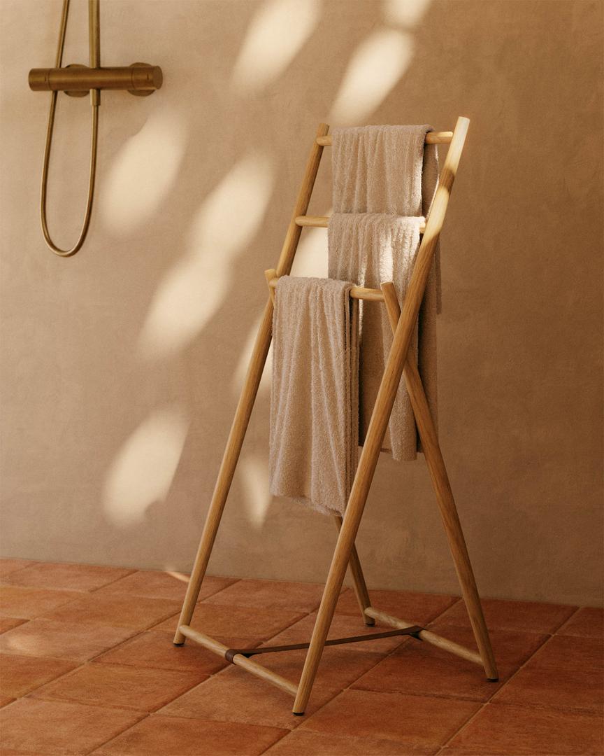 Вешалка для полотенец из массива тикового дерева. Складывается для удобства хранения.