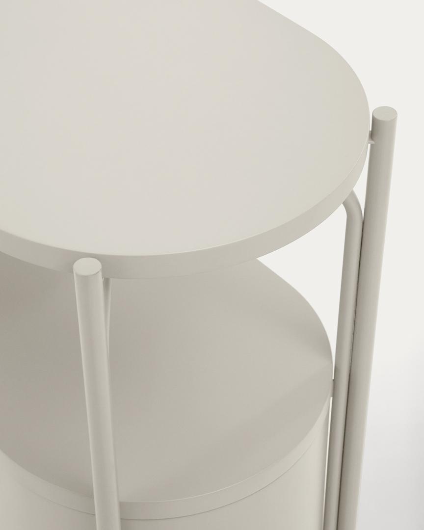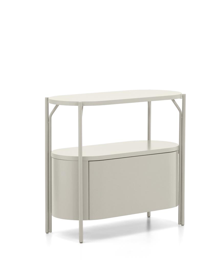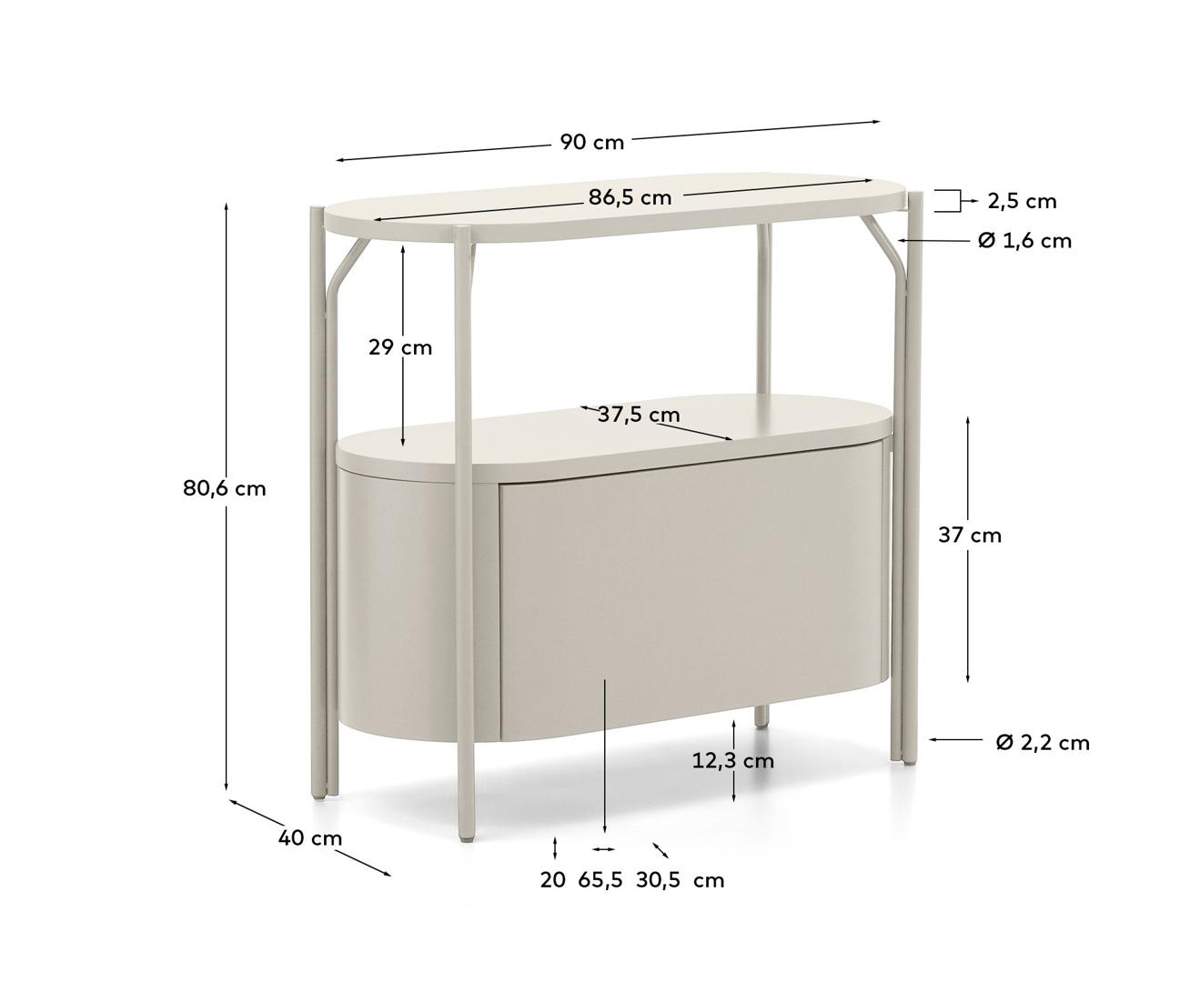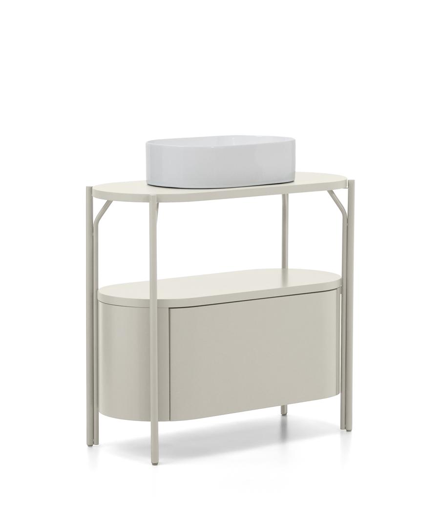 Этот предмет мебели для ванной комнаты сочетает в себе плавные формы и простые объёмы, создавая функциональное и уютное пространство. Эксклюзивный дизайн от Nahtrang для Kave Home исключает острые углы и способствует комфорту, обеспечивая плавное взаимодействие в повседневной жизни. Сочетание стальной конструкции и корпуса из лакированного водоотталкивающего МДФ обеспечивает прочность и устойчивость, а также элегантную отделку, которая гармонирует с любым стилем ванной комнаты. Выдвижной ящик с системой открывания от нажатия и плавного закрывания.