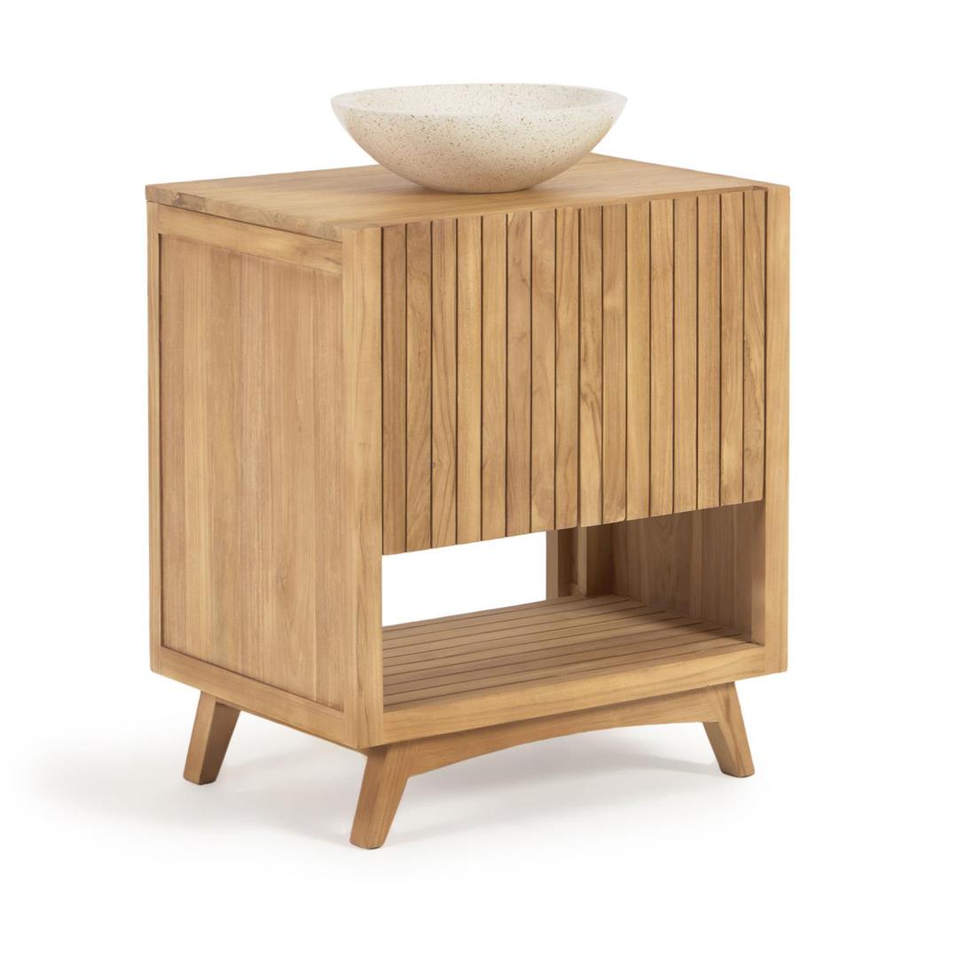 Мебель для ванной из коллекции Kuveni из тика с водонепроницаемой масляной отделкой. Отдохните в дизайнерском спа-салоне в азиатском стиле, не выходя из дома, и продемонстрируйте свои дизайнерские качества в ванной комнате. Завершите свой образ раковиной на столешнице из той же коллекции.