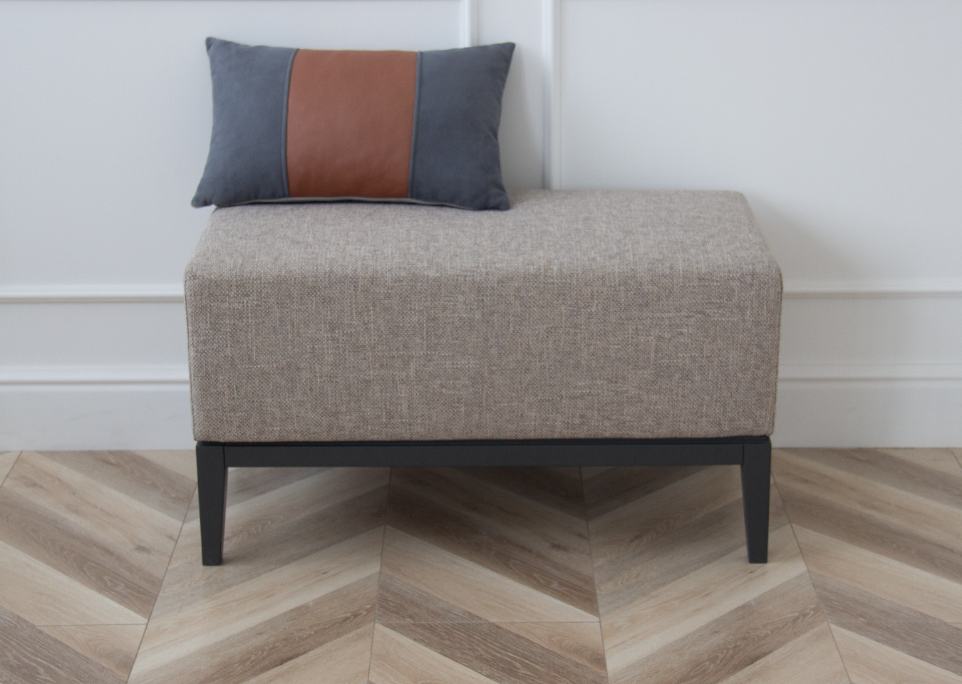 Банкетка Fjord 80 см Высота: 43,5 см Ширина: 80 см Глубина: 40 см Основание: бук под эмалью RAL 7043 Корпус: МДФ под эмалью Ткань: рогожка