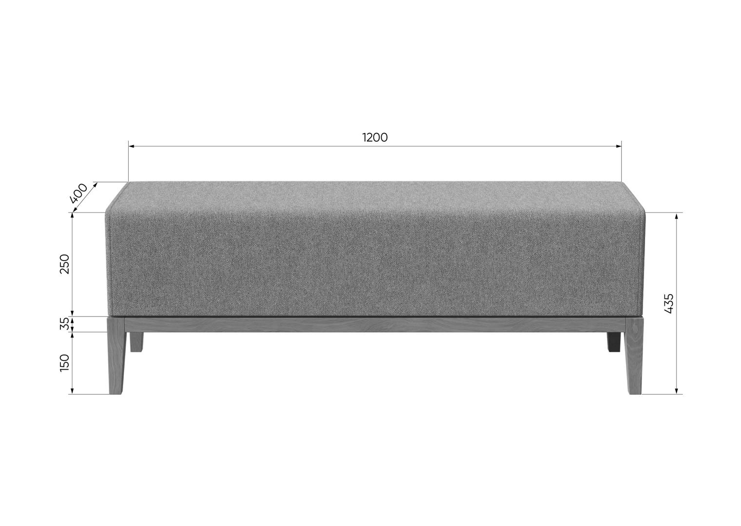 Банкетка Fjord 120 см Высота: 43,5 см Ширина: 120 см Глубина: 40 см Основание: массив бука Корпус: фанера Ткань: твид