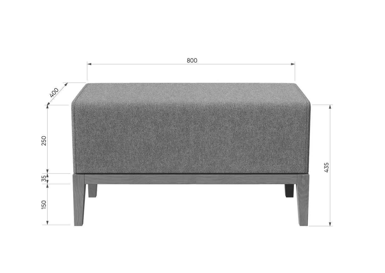Банкетка Fjord 80 см Высота: 43,5 см Ширина: 80 см Глубина: 40 см Основание: массив бука Корпус: фанера Ткань: твид