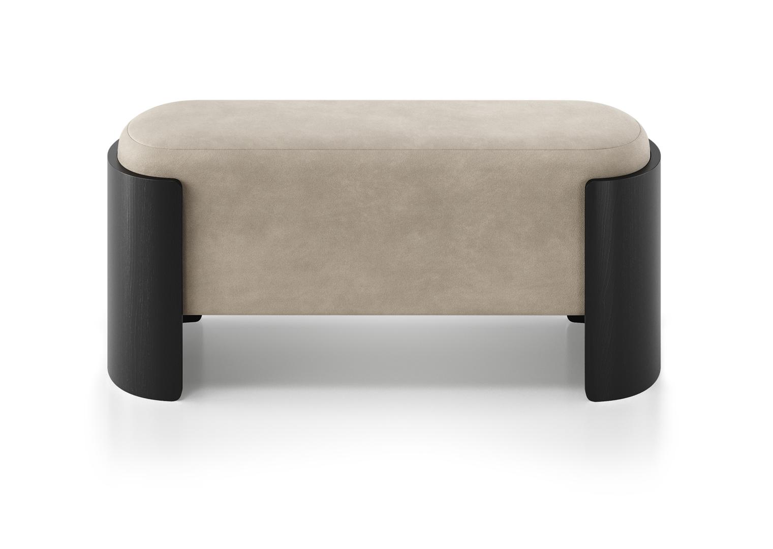 Банкетка Lagom 100 см Высота: 44 см Ширина: 100 см Глубина: 41 см Каркас: фанера, шпон дуба под эмалью RAL 9005 Обивка: Delux антивандальная мебельная ткань производства Бельгии (технология FiberGuard) Бархат, отличающийся особенной мягкостью, имеет невысокий шелковистый ворс и плотную, но пластичную основу Рекомендована любая сухая чистка (щадящая) (Р), кроме трихлорэтилена, не отбеливать
