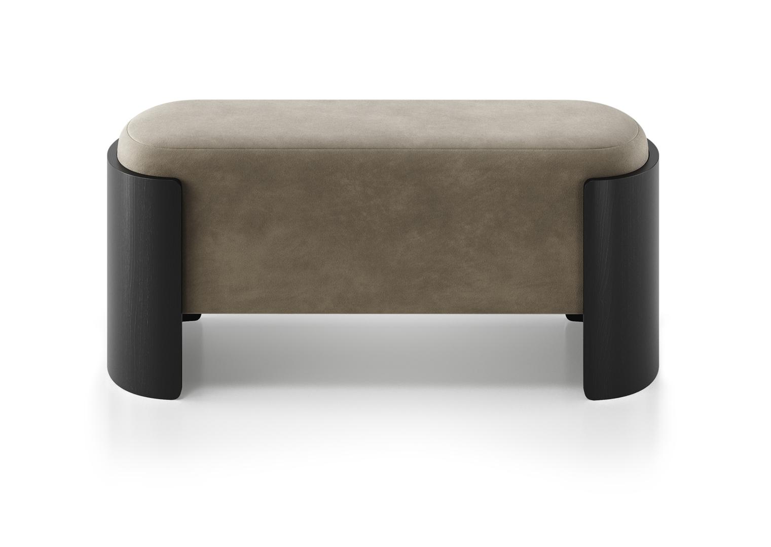 Банкетка Lagom 100 см Высота: 44 см Ширина: 100 см Глубина: 41 см Каркас: фанера, шпон дуба под эмалью RAL 9005 Обивка: Delux антивандальная мебельная ткань производства Бельгии (технология FiberGuard) Бархат, отличающийся особенной мягкостью, имеет невысокий шелковистый ворс и плотную, но пластичную основу Рекомендована любая сухая чистка (щадящая) (Р), кроме трихлорэтилена, не отбеливать