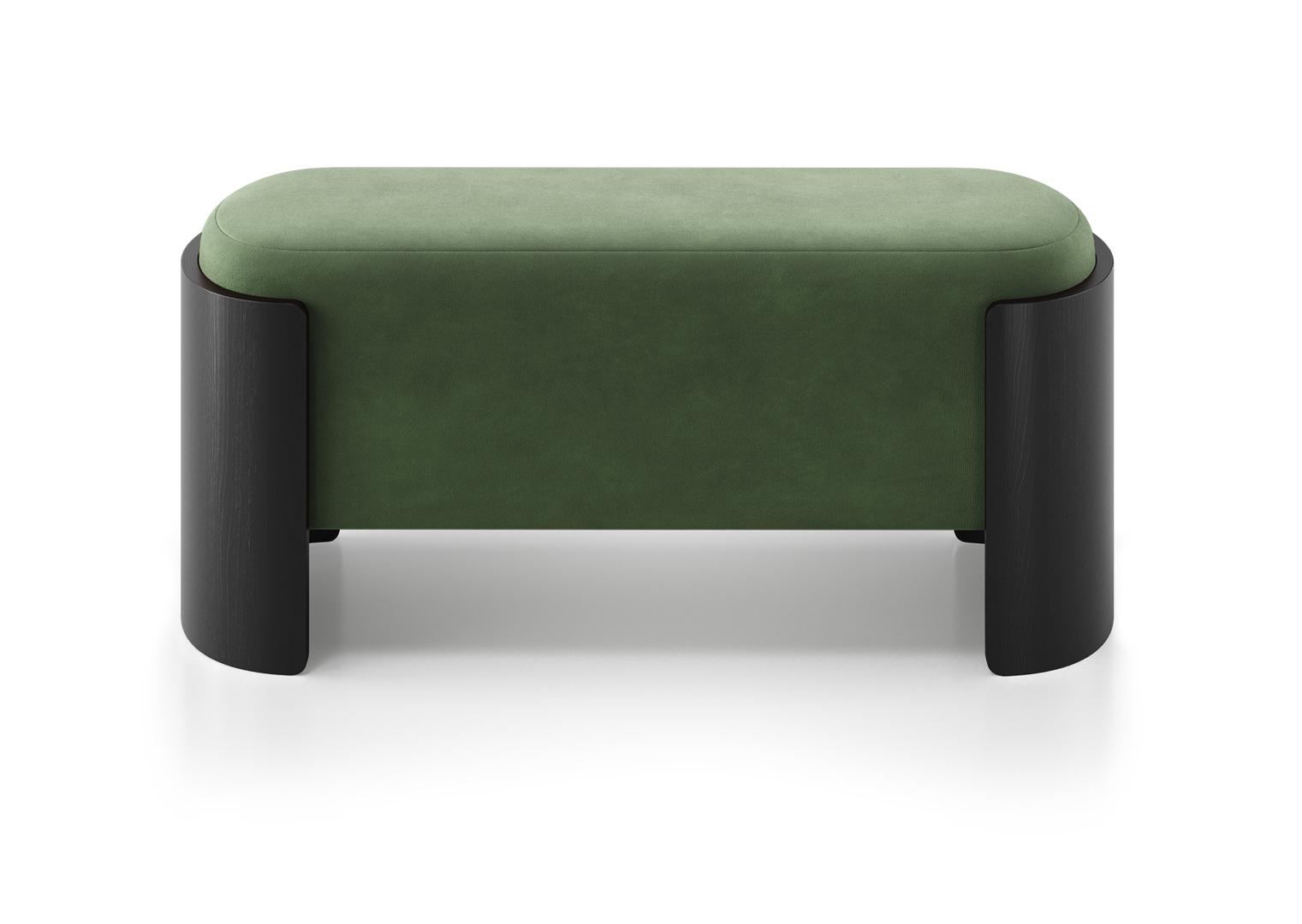 Банкетка Lagom 100 см Высота: 44 см Ширина: 100 см Глубина: 41 см Каркас: фанера, шпон дуба под эмалью RAL 9005 Обивка: Delux антивандальная мебельная ткань производства Бельгии (технология FiberGuard) Бархат, отличающийся особенной мягкостью, имеет невысокий шелковистый ворс и плотную, но пластичную основу Рекомендована любая сухая чистка (щадящая) (Р), кроме трихлорэтилена, не отбеливать