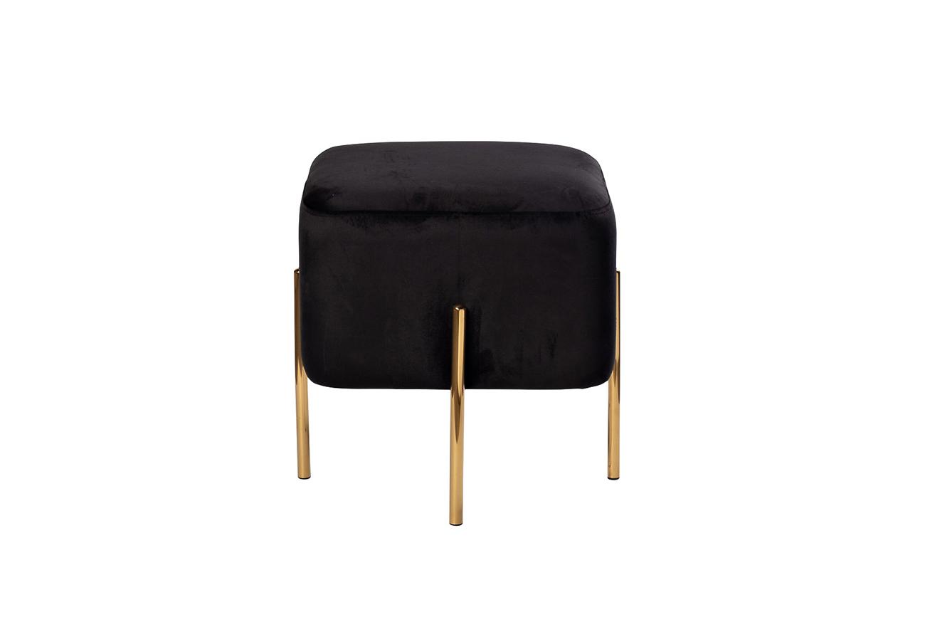 description-full - Дизайнерский пуф с золотыми ножками украсит собой роскошный интерьер в стилистике ар-деко и будет эффектно смотреться в пространстве гостиной, спальни, прихожей, гардеробной. Его можно использовать как дополнение к мягкой мебели или кровати, он превосходно справляется с функциями дополнительного места для сидения и занимает минимуму пространства за счет компактных размеров. Черный пуф с обивкой из дорогого велюра выглядит строго и необычно, а ножки из стали цвета золота добавляют ему изящества и легкости. Вы можете купить оригинальный пуф для прихожей, чтобы добавить шика и уюта своему дому, или подарить его людям с хорошим вкусом.