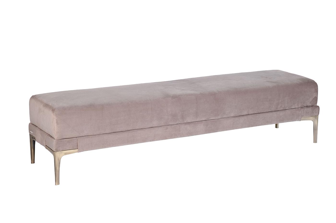 description-full - Прямоугольная банкетка Prima придает интерьеру роскошный и завершённый вид. Модель обладает мягким посадочным местом, которое обито шикарным тактильным велюром. Это изделие отличается высоким качеством, износостойкостью и лаконичным дизайном. Оно с лёгкостью сделает ваш интерьер более функциональным и наполнит его уютом. В спальне банкетка может занять место у подножия кровати и принять роль периодического хранения белья, одежды. Однако, она будет одинаково хорошо смотреться в гостиной или прихожей, где сыграет не менее практичную роль. Возможно изготовление банкетки на заказ с учётом индивидуальных пожеланий покупателя. Прикроватная банкетка PRIMA на металлических опорах. Габариты банкетки: ширина-160см, глубина- 40см, высота- 40см.Металлические опоры высотой 180мм. цвет опор бронза. В стандартном варианте банкетка выполнена в ткани велюр коллекция Романтика 23.Возможно исполнение с декоративной прострочкой и утяжкой.