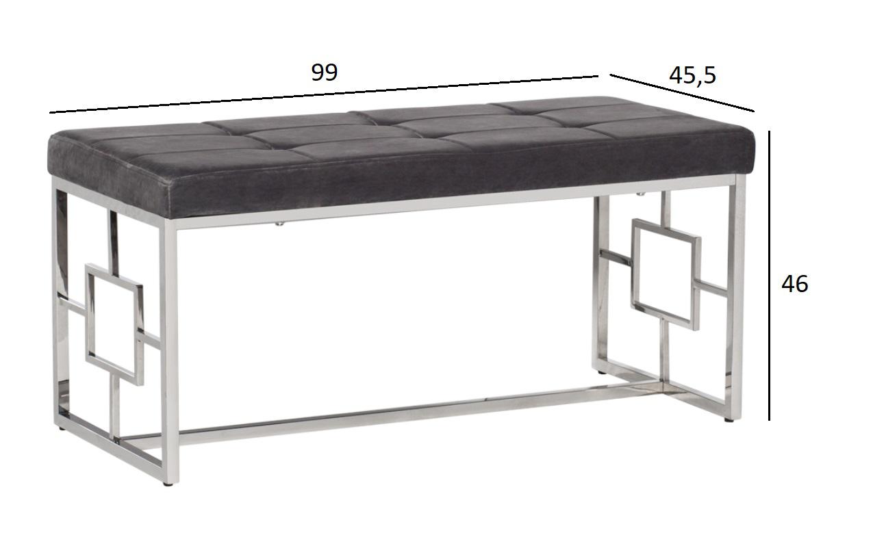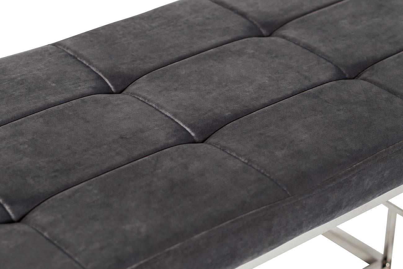 description-full - Банкетка из велюра отличаются прочностью и долговечностью. Обивка элегантного светло-серого цвета позволяет вписать ее практически в любой интерьер. Изящество и простота конструкции из полированной стали делает банкетку уместным и надежным предметом меблировки как для дома, так и для офисных помещений.