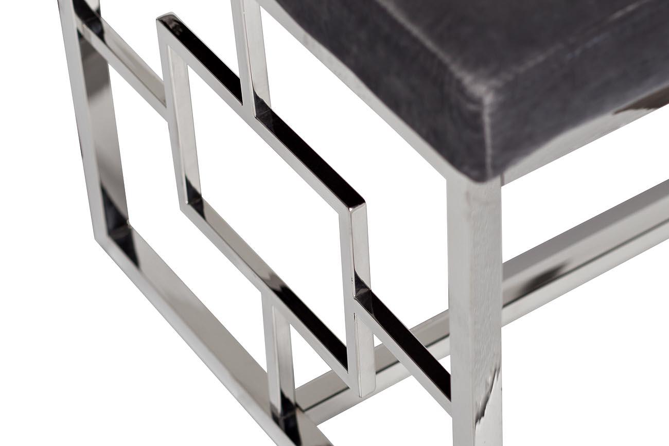 Материал - основание - нерж.сталь, цвет хром; обивка - велюр (100% полиэстер), цвет серый