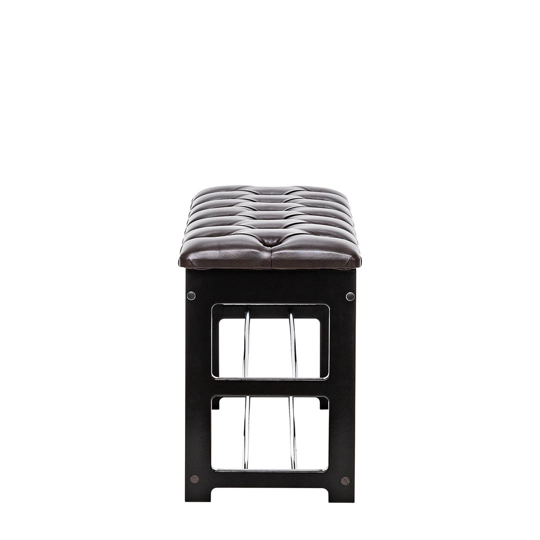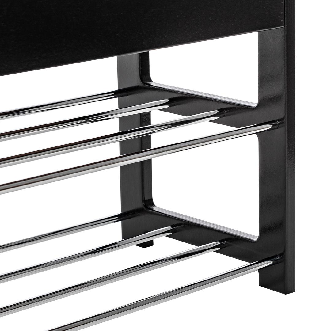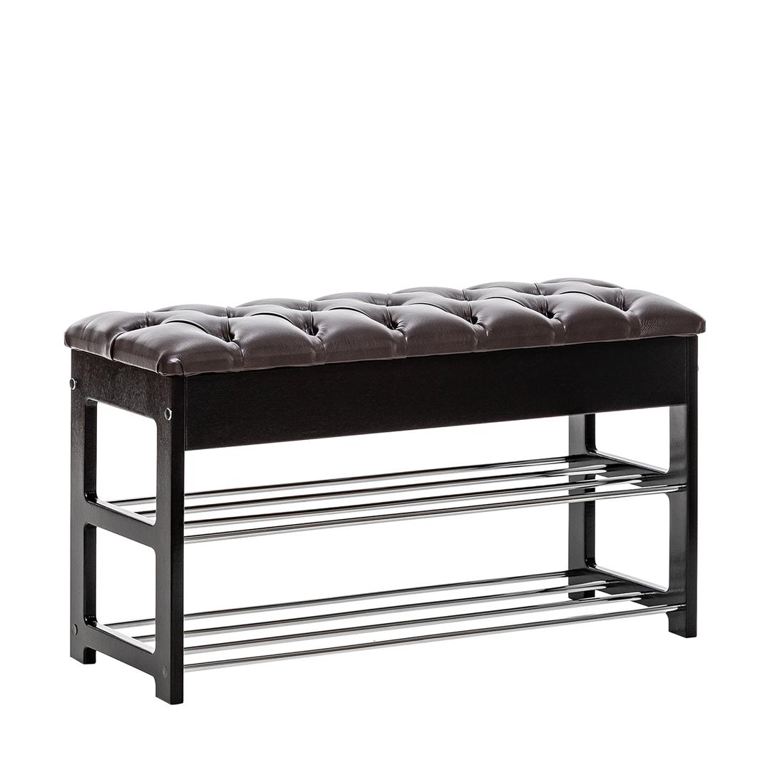Широкая двухместная банкетка с мягким сиденьем и полкой для обуви. Она сделана в незамысловатом дизайне и органично впишется в любой интерьер.