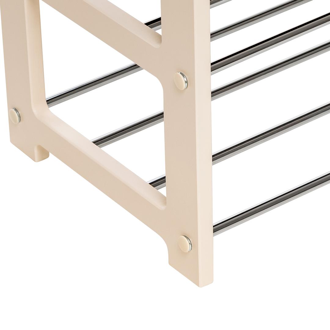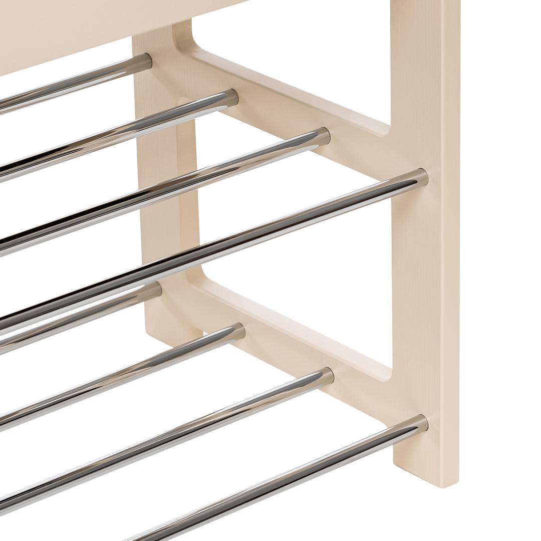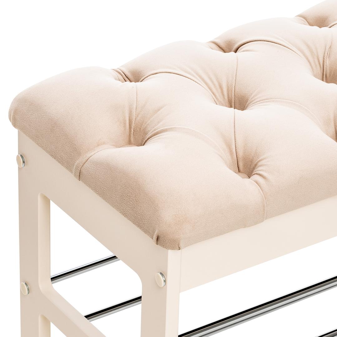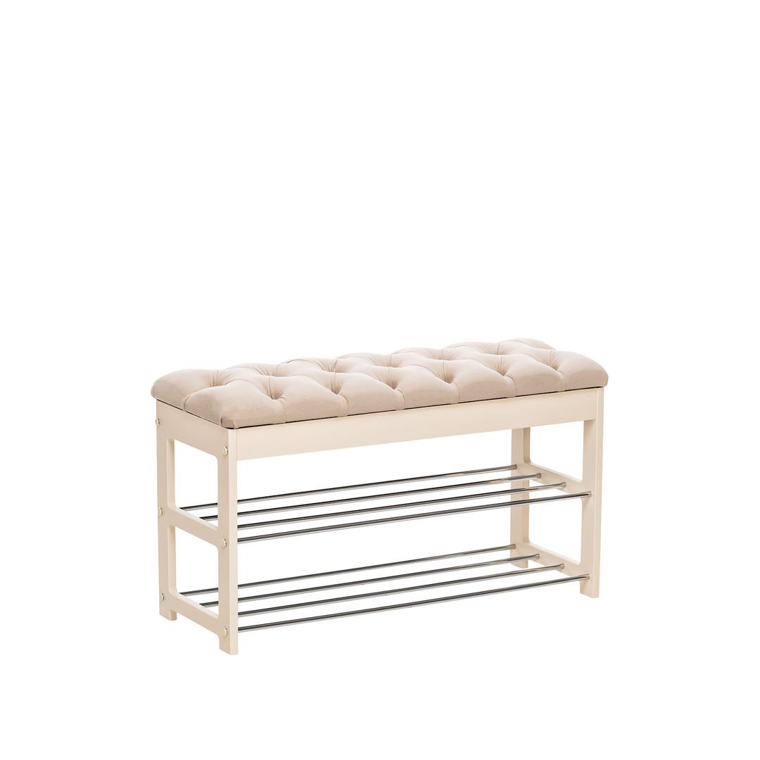 Широкая двухместная банкетка с мягким сиденьем и полкой для обуви. Она сделана в незамысловатом дизайне и органично впишется в любой интерьер.
