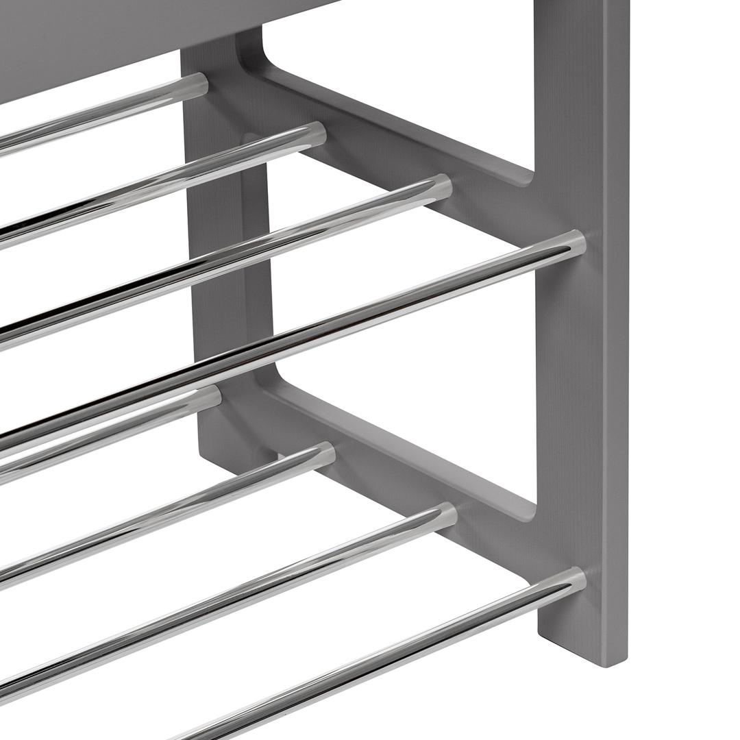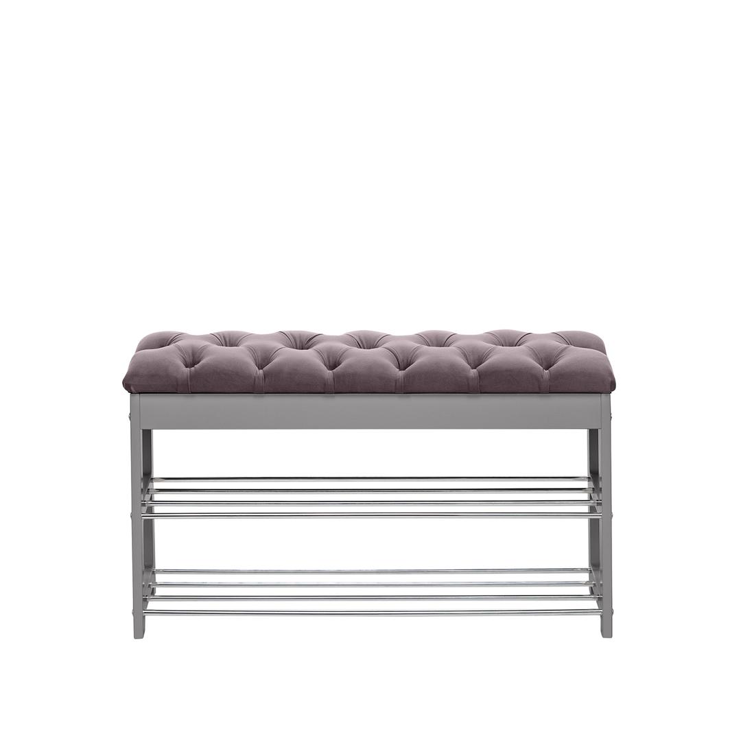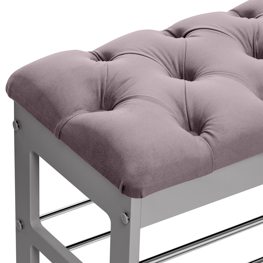 Широкая двухместная банкетка с мягким сиденьем и полкой для обуви. Она сделана в незамысловатом дизайне и органично впишется в любой интерьер.