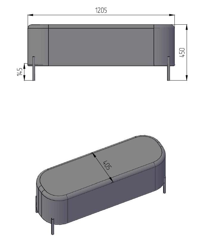 Размеры - длина 120.5 см, ширина 45 см, высота 40.5 см