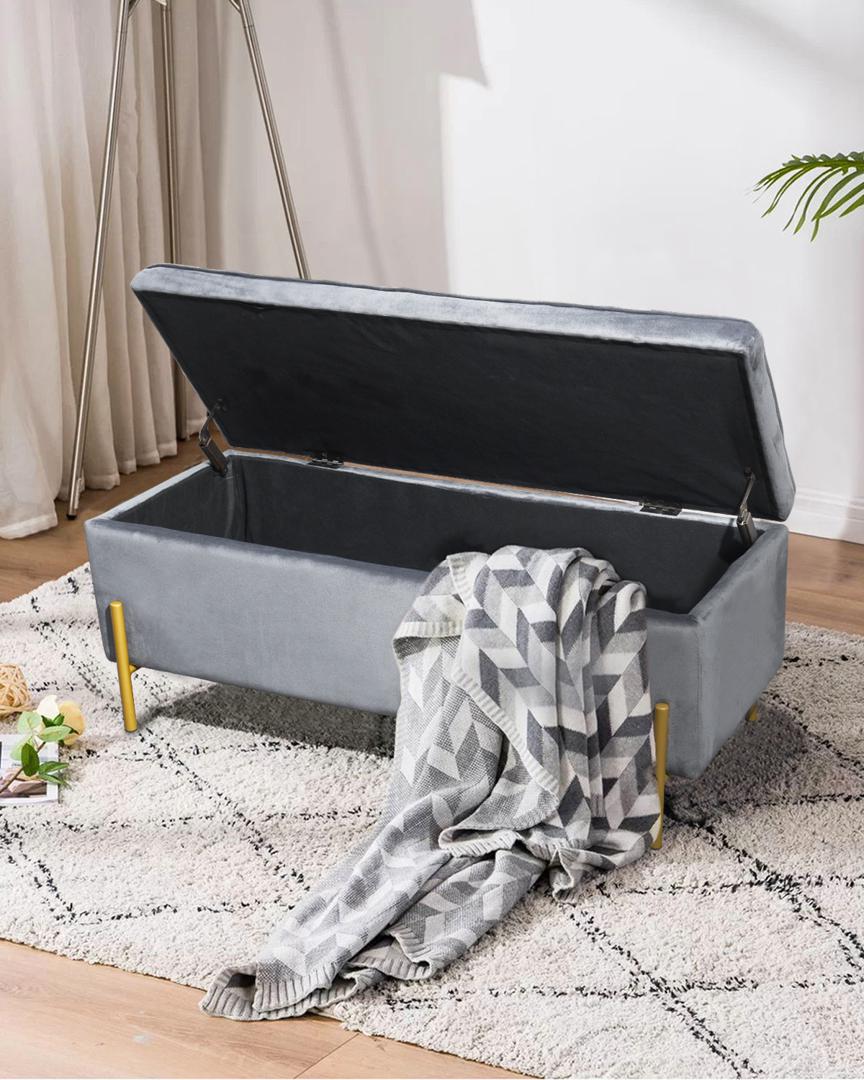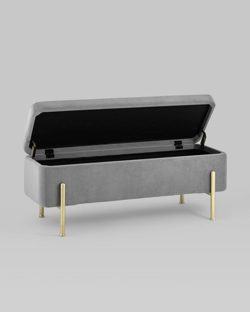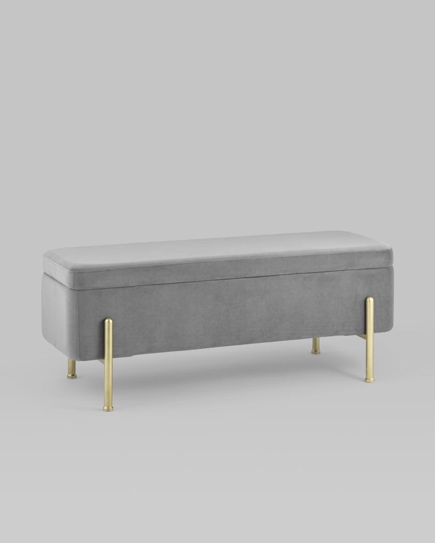 Банкетка Болейн с ящиком велюр серый ножки из металла цвет золото