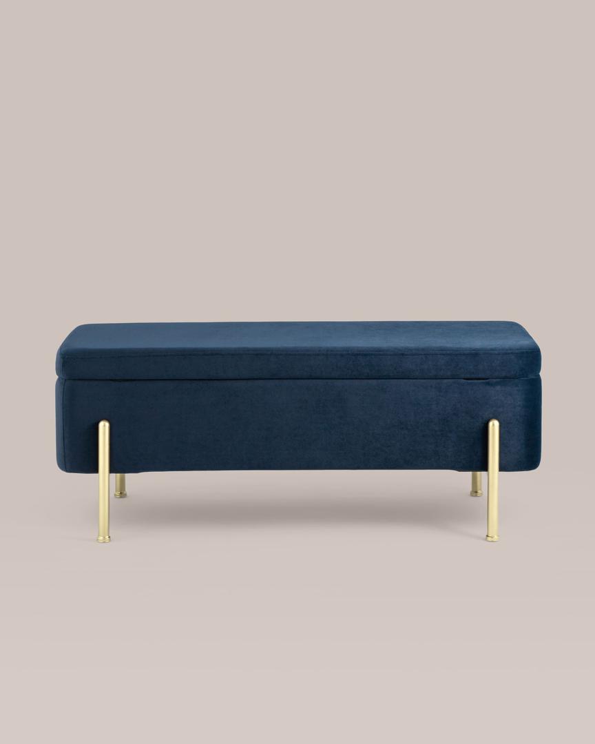 Банкетка Болейн с ящиком велюр синий ножки из металла цвет золото