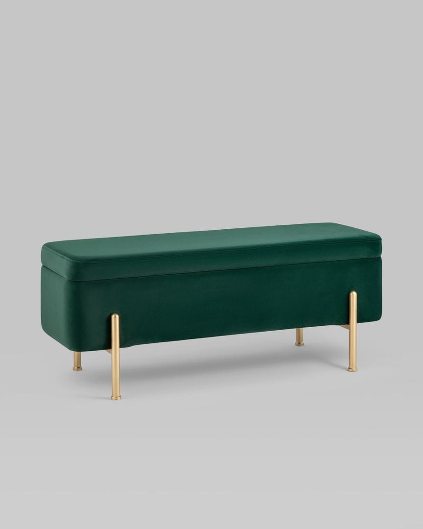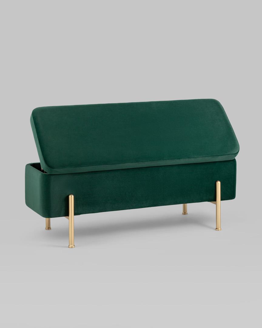 Банкетка Болейн с ящиком велюр зеленый ножки металл цвет золотой