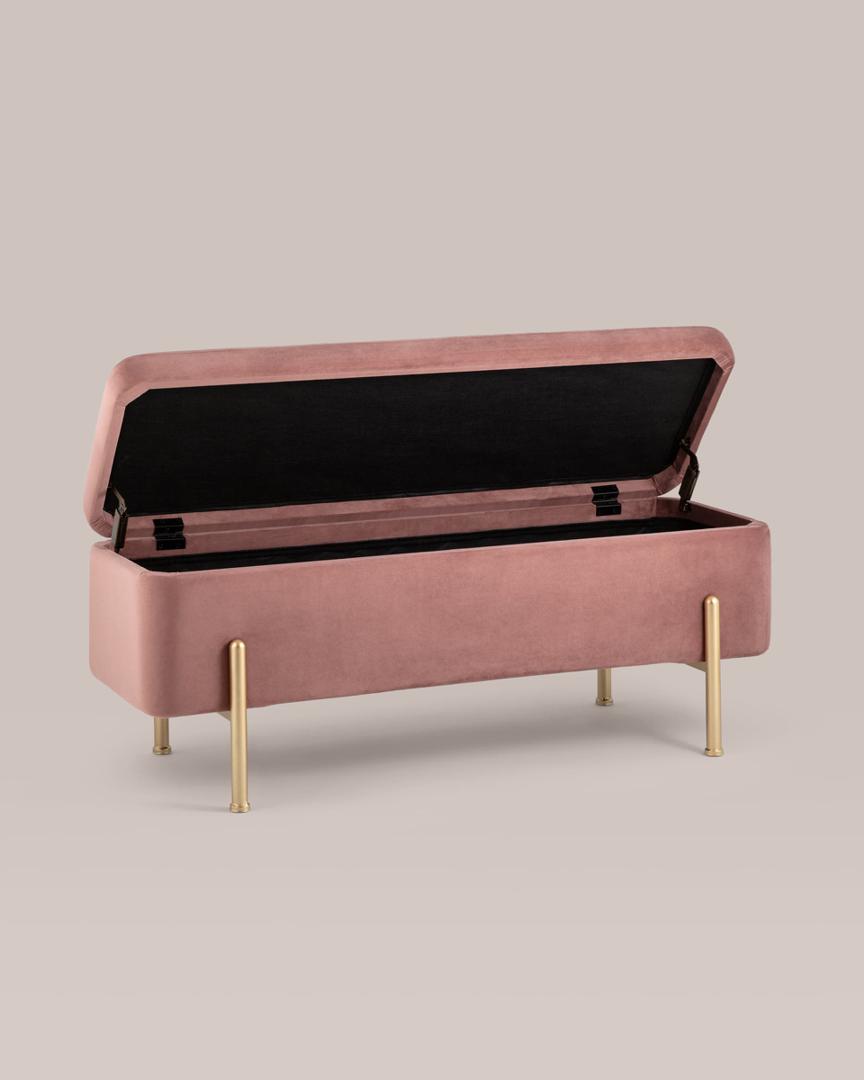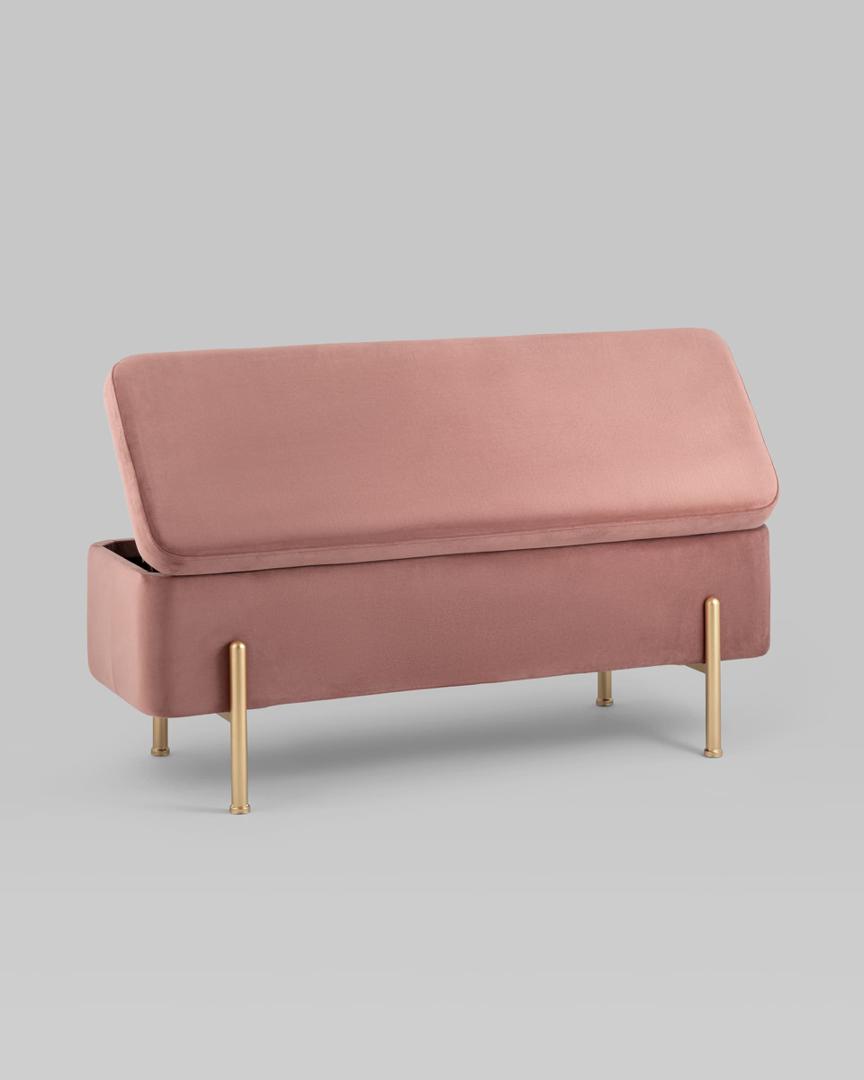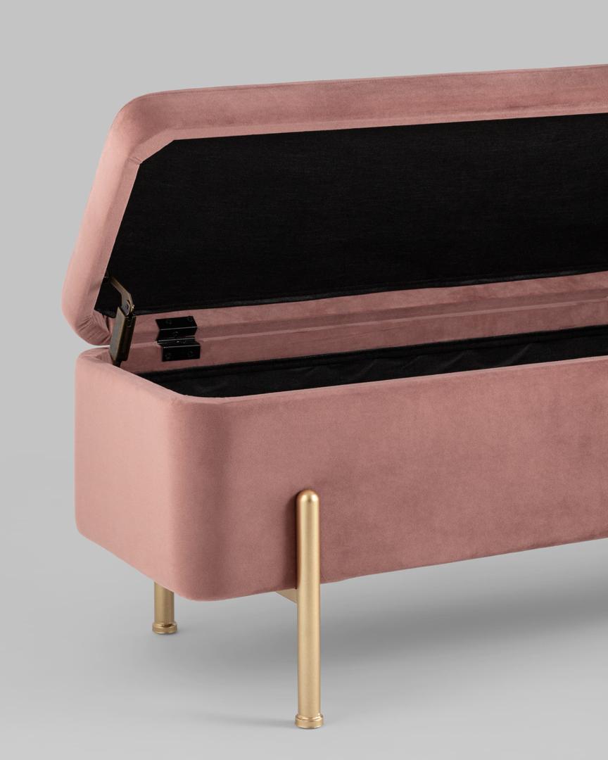 Банкетка Болейн с ящиком велюр розовый ножки металл цвет золотой