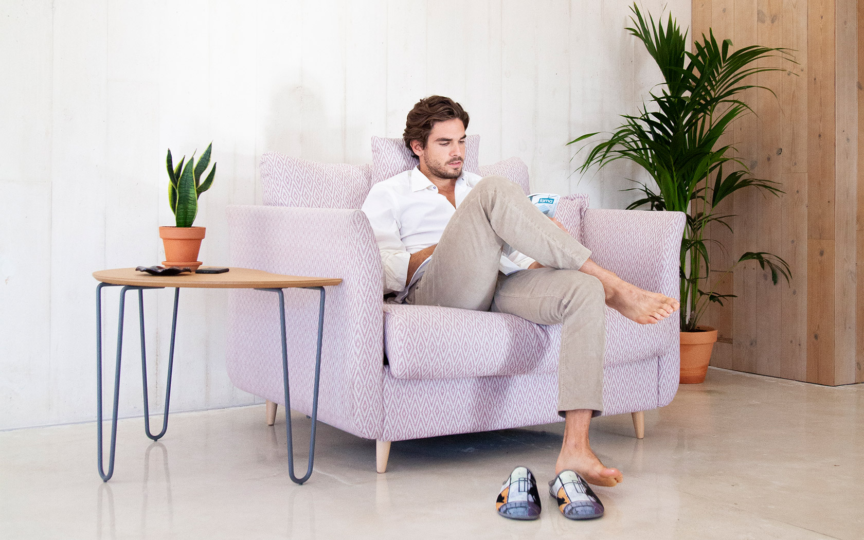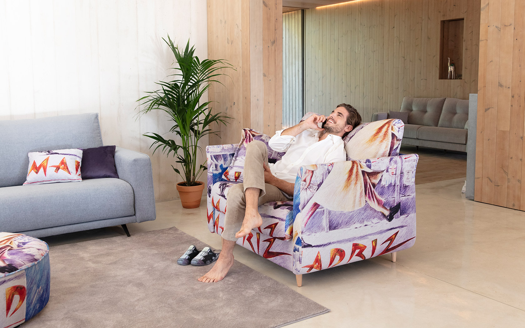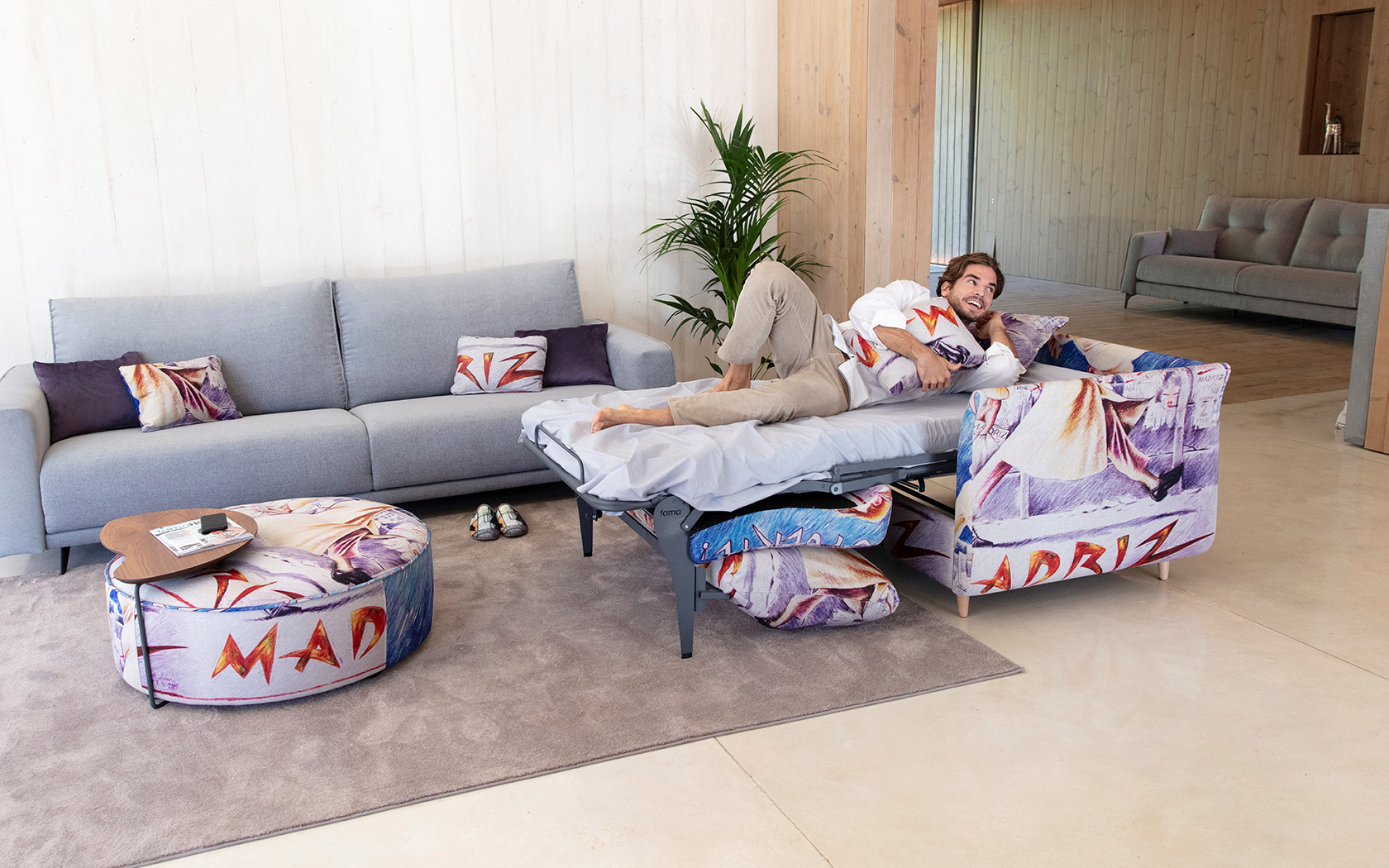 Принадлежа к модели Helsinki, мы создали это новое кресло с механизмом кровати. Нам удалось сохранить высокий комфорт, а также элегантный и легкий дизайн Helsinki You & Me, поскольку он не похож на диван-кровать. Эта новая версия кровати привносит в модель большую добавленную стоимость, так как мы можем разместить ее в любой гостиной с возможностью преобразования в кровать, когда она нам понадобится.