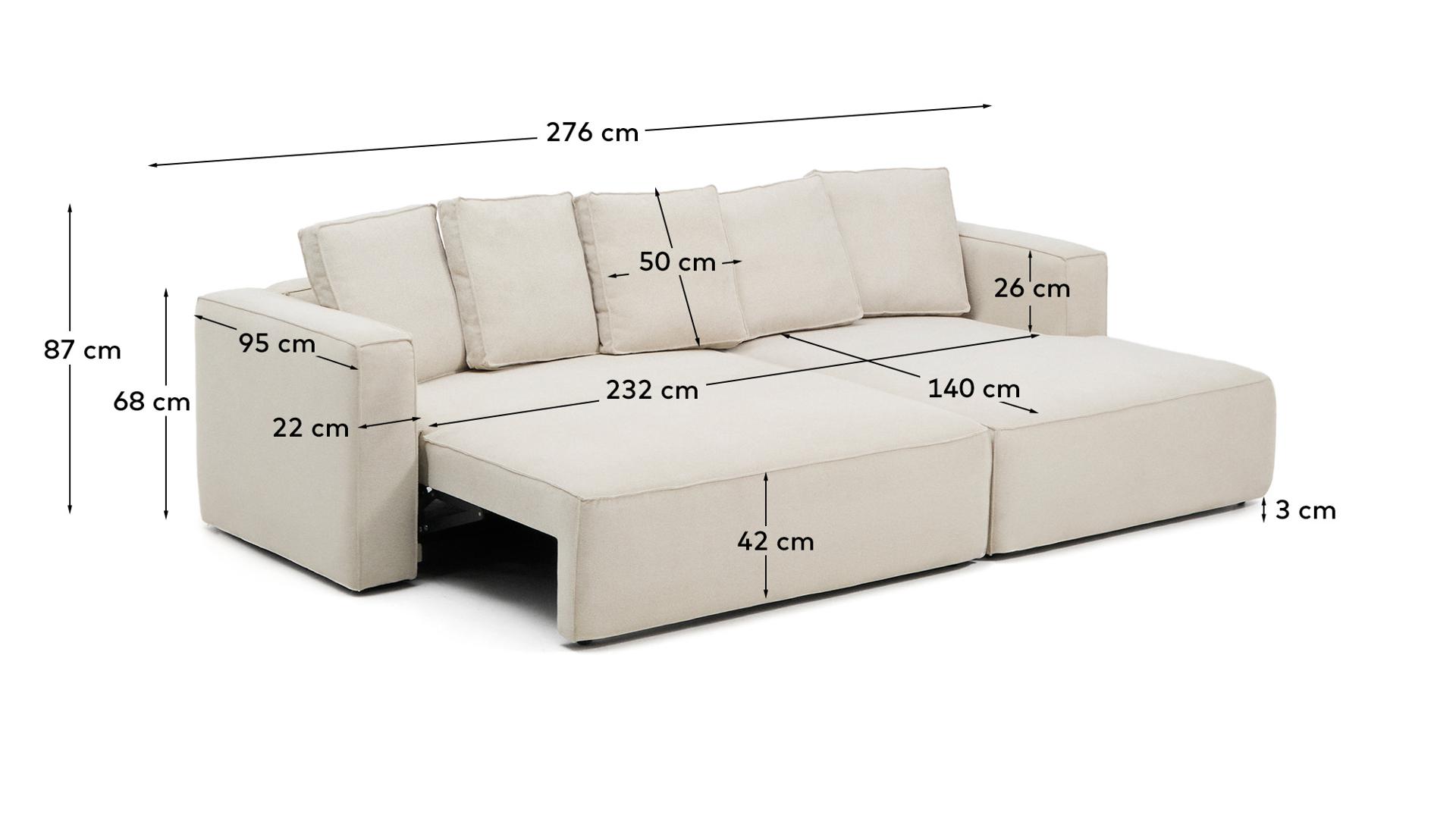 Этот диван-кровать отличается прямыми линиями и внушительными размерами. Дизайн подлокотников и спинки предлагает современную и уютную интерпретацию с прочными объемами и сбалансированными пропорциями. Обивка из мелкозернистого шенилла приятна на ощупь и обработана защитой от пятен, что облегчает чистку и уход. Диван имеет среднюю жесткость благодаря наполнителю из пеноматериала средней и высокой плотности плотностью 28 кг/м³ и системе пружин No-Sag, которая обеспечивает равномерную поддержку по всей поверхности. Подушки спинки имеют съемные чехлы для большей практичности и наполнены силиконовым волокном и перфорированным пеноматериалом, что обеспечивает дополнительную мягкость и гибкость. Функция раскладывания кровати интуитивно понятна и легка благодаря инновационной системе Y-open. Синхронизированный механизм раскладывания превращает диван в просторную кровать размером 140 x 232 см легко и всего за несколько секунд. Каркас изготовлен из сертифицированной древесины FSC Mix Credit, которая сочетает в себе материалы из сертифицированных FSC лесов и контролируемой древесины, что гарантирует ответственное происхождение. Этот диван-кровать произведён в Европе, что означает локальное производство и снижение выбросов CO₂ для снижения воздействия на окружающую среду. Ткань от поставщика, сертифицированного по стандарту OEKO-TEX® STANDARD 100, гарантирует экологичность производства.