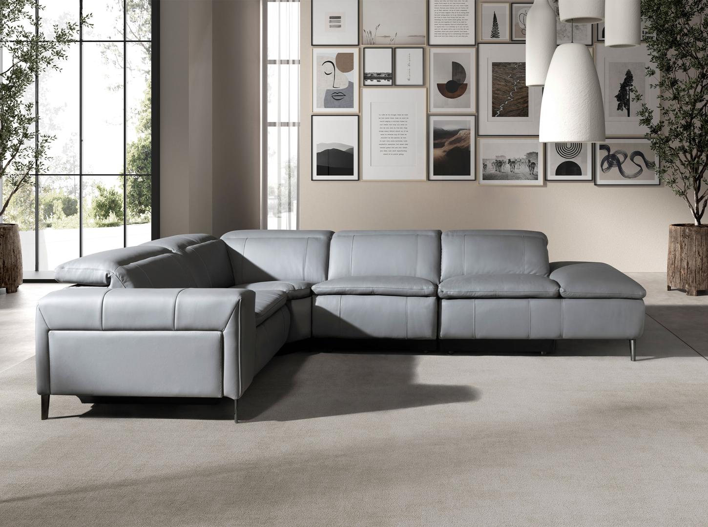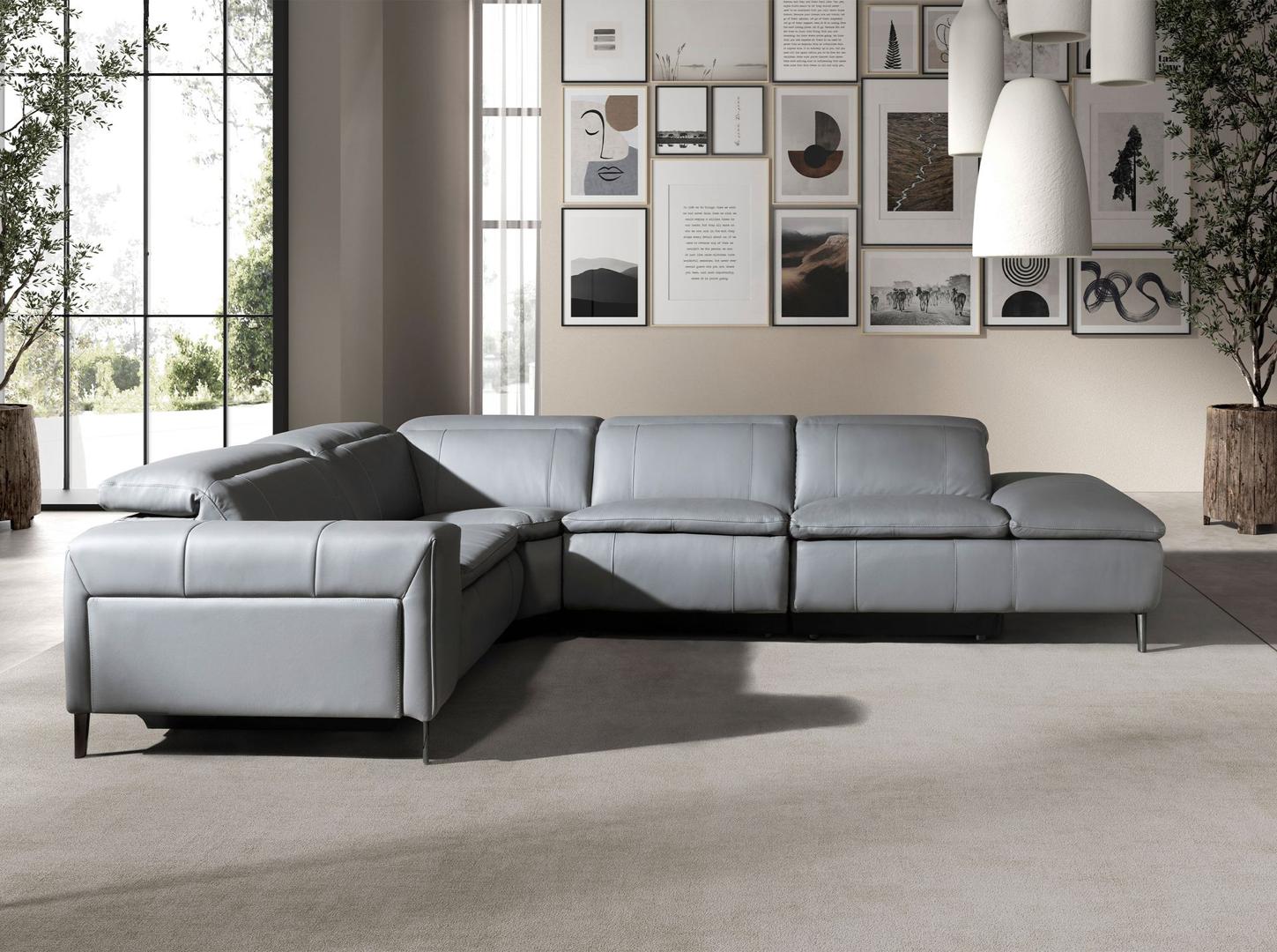 Диван Angel Cerda 5-местный диван с реклайнером 6217 с правым шезлонгом из серой кожи арт. 265617