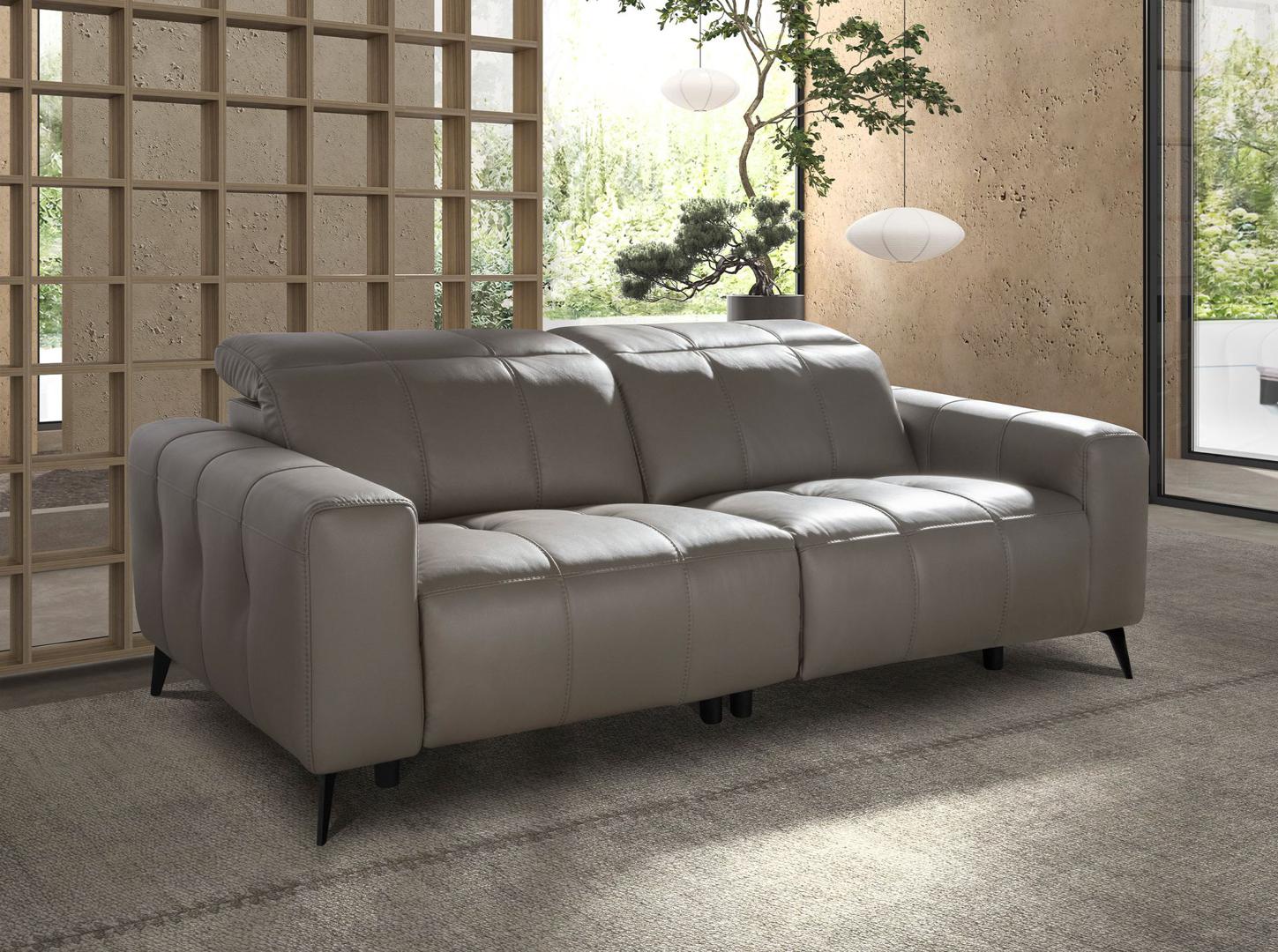 Диван Angel Cerda 3-местный диван с реклайнером из серой кожи модель 6210 арт. 265589