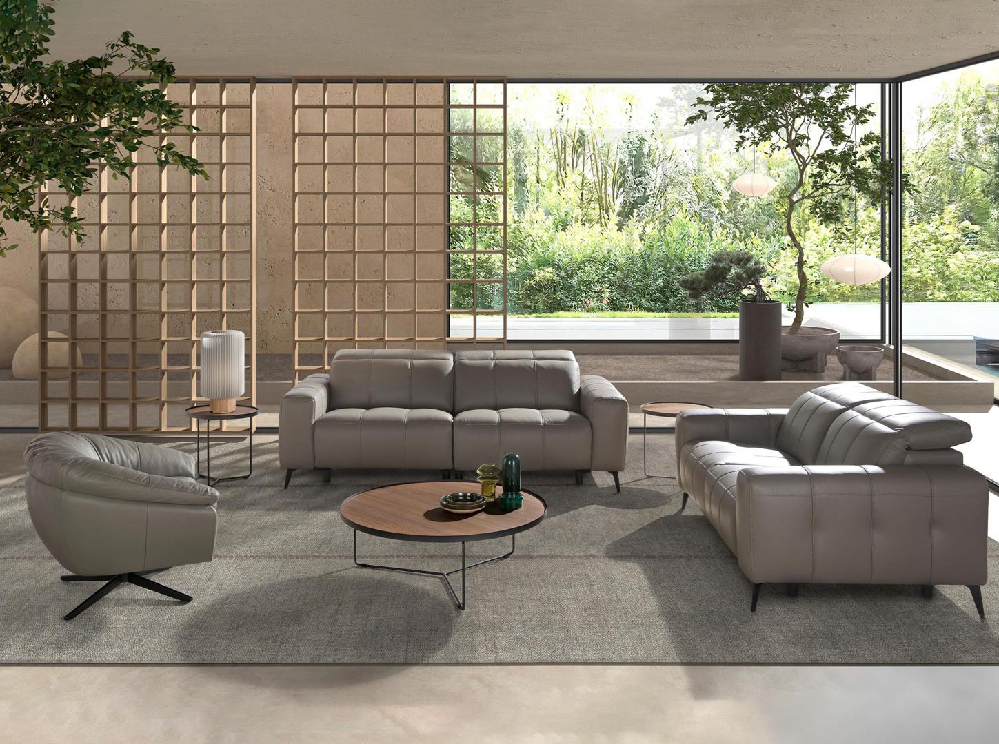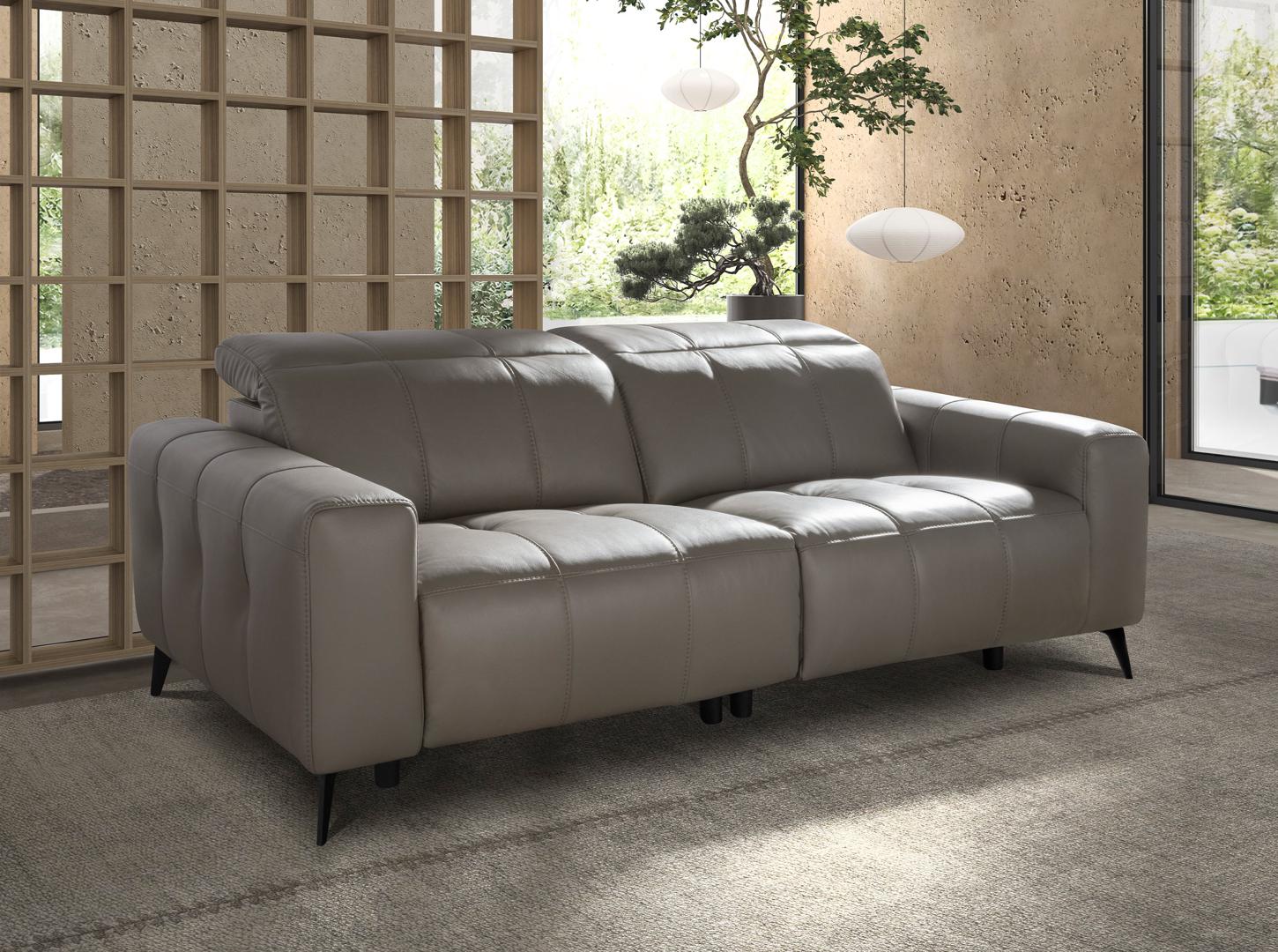 3-местный диван для релаксации с современным дизайном, обитый серой воловьей кожей с подголовником для обеспечения большего комфорта. Благодаря своему стилю и ножкам из нержавеющей стали, окрашенным черной эпоксидной краской , этот диван привнесет нотку авангарда и элегантности, которую вы ищете в своем доме.