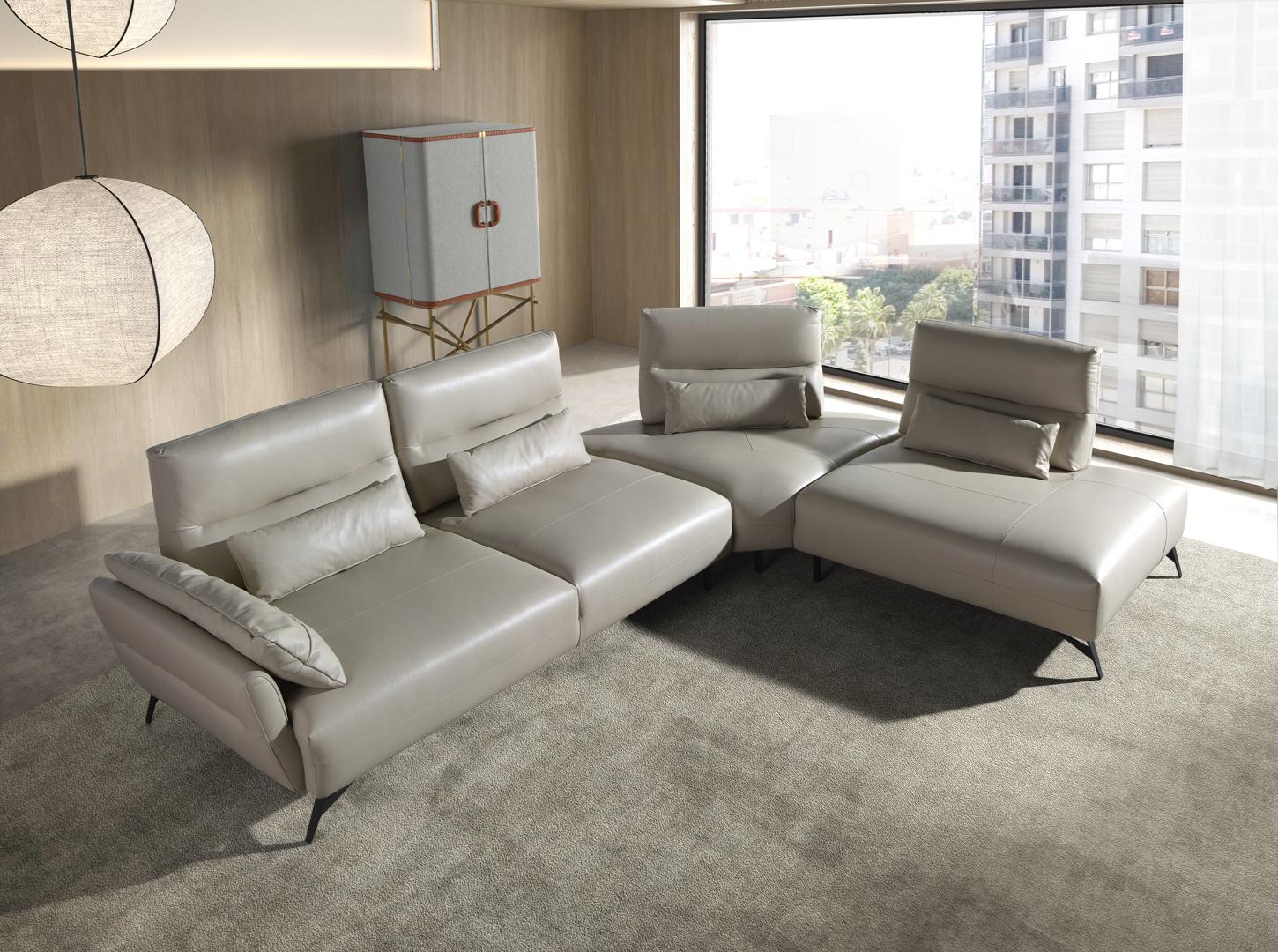 Диван Angel Cerda 5-местный диван с реклайнером 6213 с правым шезлонгом из песочной кожи арт. 265621