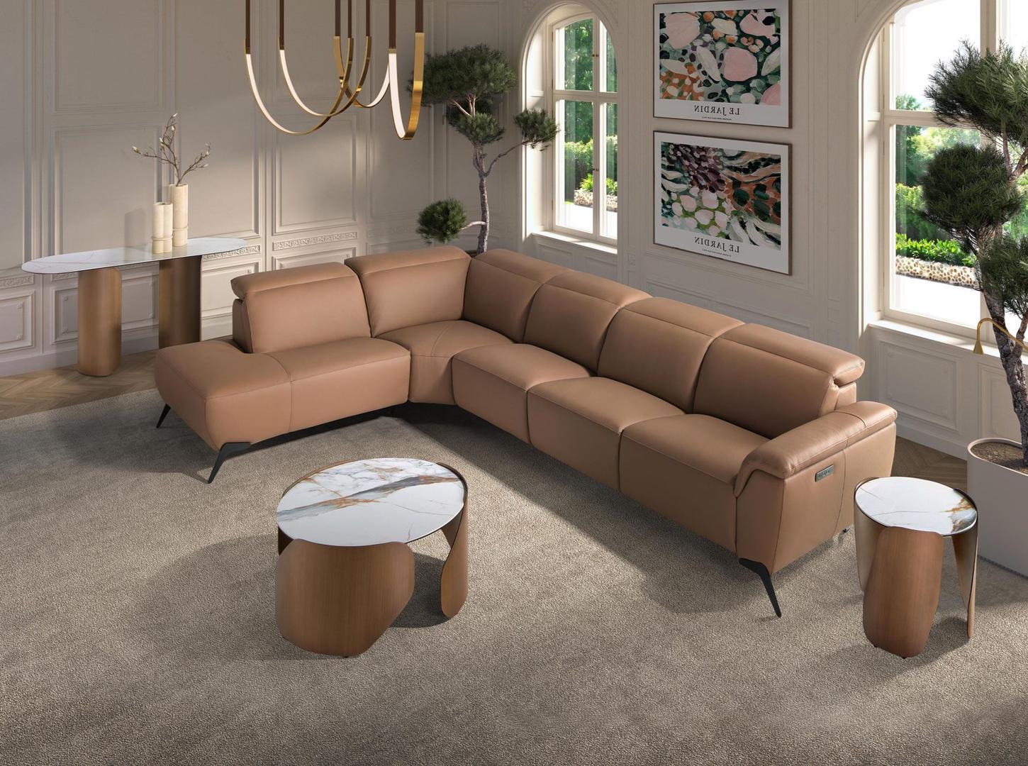 Модульный пятиместный диван-шезлонг с левосторонним расположением спинки и электрическим механизмом раскладывания, современный дизайн, обивка из натуральной коричневой коровьей кожи, подголовники для большего комфорта. Его стиль и черные ножки из нержавеющей стали придадут вашему дому нотку авангардного дизайна и элегантности, которые вы ищете. Электрическая система релаксации обеспечит дополнительный комфорт, необходимый для отдыха.