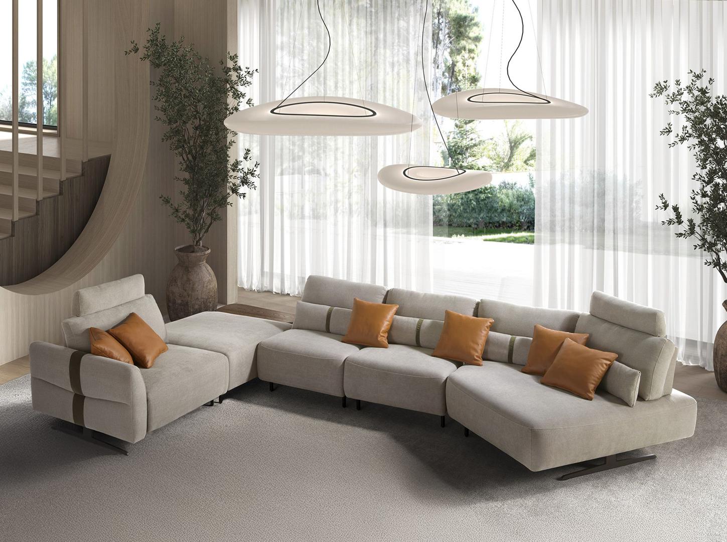 Современный пятиместный модульный диван-шезлонг с левой спинкой, обитый тканью песочного цвета, с подголовниками для дополнительного комфорта. Благодаря своему стилю и ножкам из нержавеющей стали с черным эпоксидным покрытием, этот диван привнесет в ваш дом нотку авангарда и элегантности, которые вы ищете. Модный диван, идеально подходящий для вашей зоны отдыха, с оригинальной бархатной обивкой. Электрическая система раскладывания обеспечивает дополнительный комфорт, необходимый для расслабления.