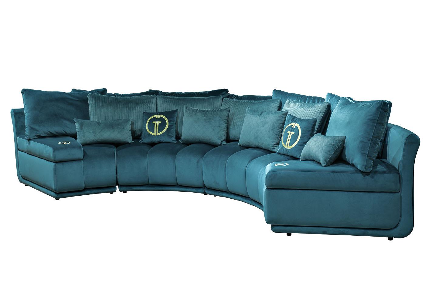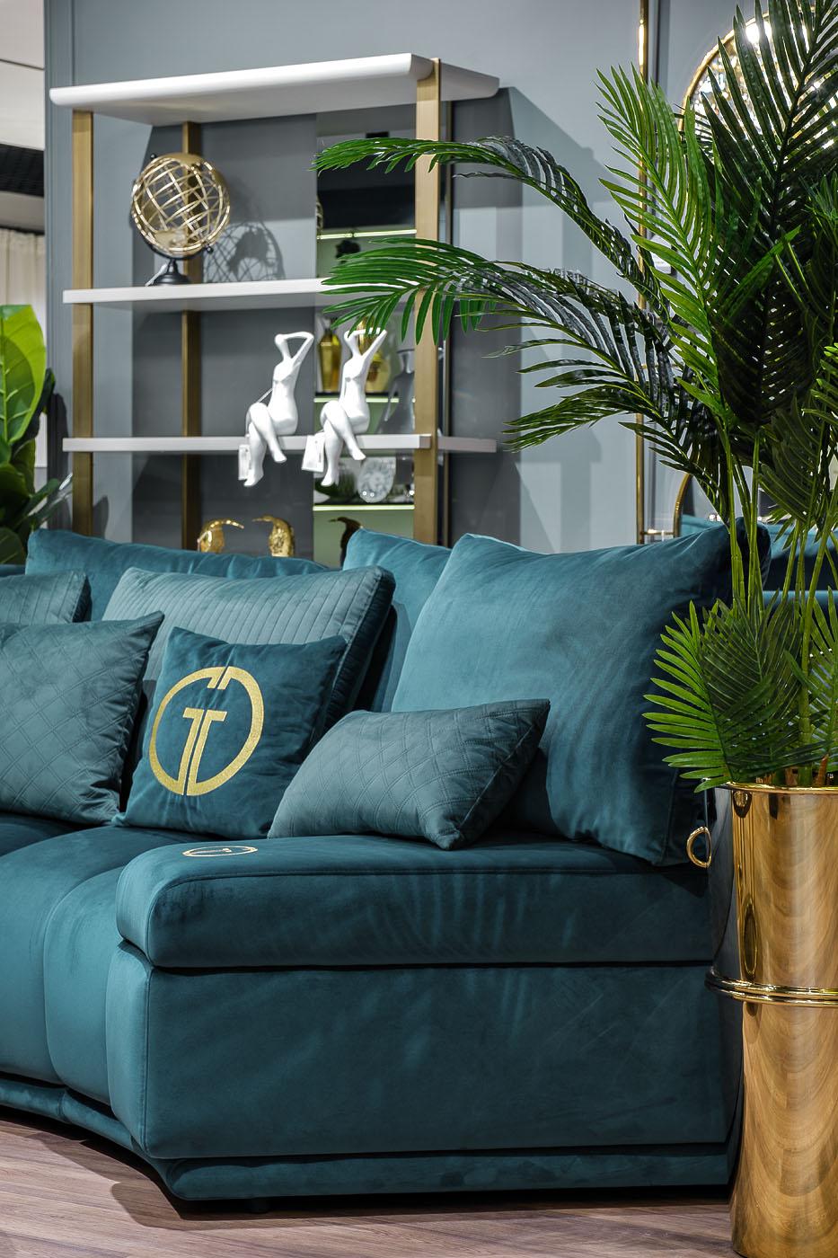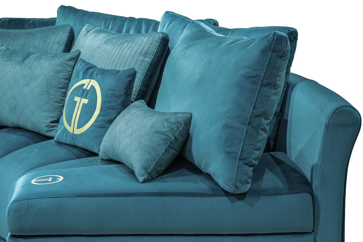 description-full - Комплект мебели №5 диван Coliseum модульный. В состав комплекта входит: модуль нейтральный R3 - 2шт в ткани Paddington 20; модуль левый с подлокотником RL - 1шт в ткани Paddington 20; модуль правый с подлокотником RR - 1шт в ткани Paddington 20; подушки спинки №1 107*61см - 7шт в ткани Paddington 20; подушки спинки №2 80*55см - 4шт в ткани Триумф Лайн 12; декоративные подушки №3 62*46см- 2шт в ткани Триумф Квадро 12; декоративные подушки №4 62*32см - 2шт в ткани Paddington 20; декоративные подушки 45*45см с вышивкой - 2шт Paddington 20. На подлокотниках модулей RR и RL вышивка GD эмблема золотыми нитками. Модульный диван COLISEUM должен обязательно завершаться модулем с подлокотниками.Основная ткань комплекта- Paddington 20 бирюза Габариты модульного дивана:длина - 460см; глубина - 203см,высота сиденья- 84см, глубина сиденья- 68см.