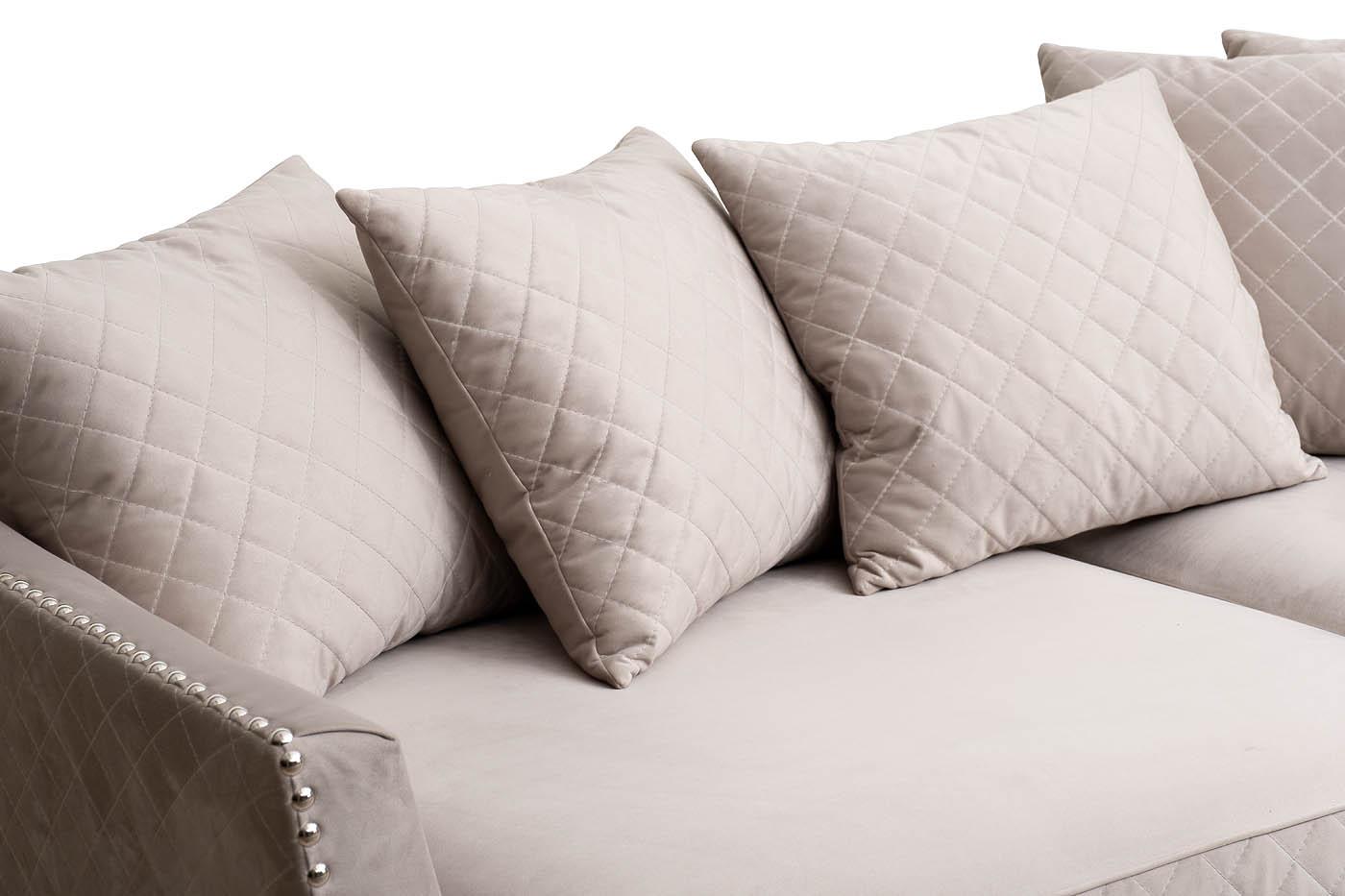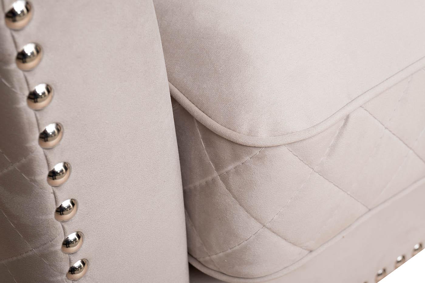 description-full - Элегантный диван с обивкой из роскошного микровелюра из коллекции тканей Garda Decor просто создан для сибаритов и аристократов. Мягкие стеганые подушки сиденья и спинки из латексоподобного высокоэластичного полиуретана марки HR обеспечивают максимальный комфорт и годами держат форму. Каркас дивана выполнен из калиброванного деревянного бруса 1 категории; в основании дивана - высококачественная фанера из натуральной березы и эластичные ремни. Диван отделан декоративными гвоздиками. В состав микровелюра входит нейлон (5%) и хлопок (15%) для значительного увеличения износостойкости. Высота спинки (габаритная с подушками) - 90см. Высота спинки по каркасу - 70см. Глубина посадочного места (до подушек спинки) - 65см. Высота посадочного места - 45см от пола. Ширина подлокотника 15см. В комплекте 6 подушек спинки 57*65см, с прострочкой на одной стороне. В стандартном исполнении: обивка - велюр Colt030, цвет ножек - 4, колесная опора - хром, гвозди хром большие.