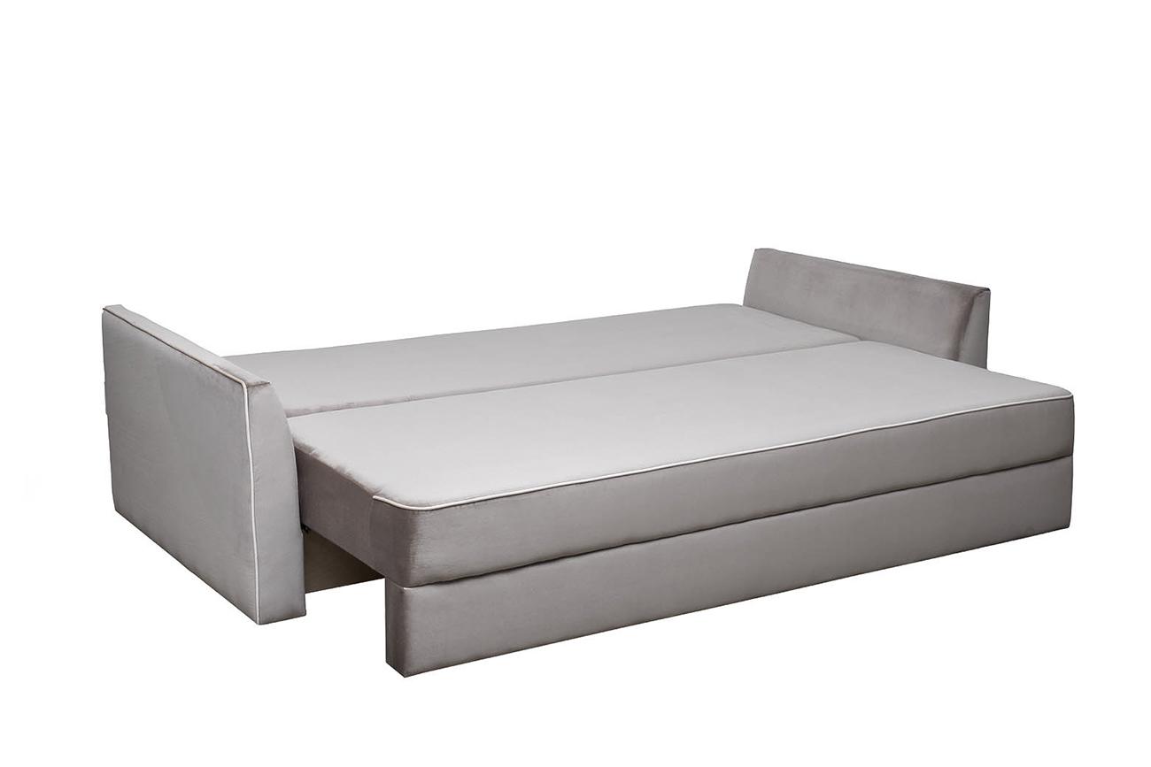 description-full - Раскладной трехместный диван органично вписывается в любой современный интерьер. Благодаря механизму трансформации Тик-Так, в разложенном виде диван отлично справляется с функциями удобного спального места.Прочный каркас мебели выполнен из бруса и способен выдержать большие нагрузки. Мягкие подушки и подлокотники обеспечивают поддержку спине и удобную посадку. Диван под заказ доступен в различных вариантах обивки. Механизм трансформации Тик-Так. Габариты спального места 1580*2000мм.Габариты дивана:ширина-2260мм,глубина-1050мм,высота-920мм. Габариты сиденья:ширина-2000мм,глубина-823мм,высота-420мм. В стандартном исполнении: обивка Комбо в тканях коллекции Garda Decor: диван - вельвет Velvet SBEG, кант - вельвет Velvet ECRU, подушки спинки- вельвет с принтом Umbria SBEG ; вариант прочее - без гвоздей.