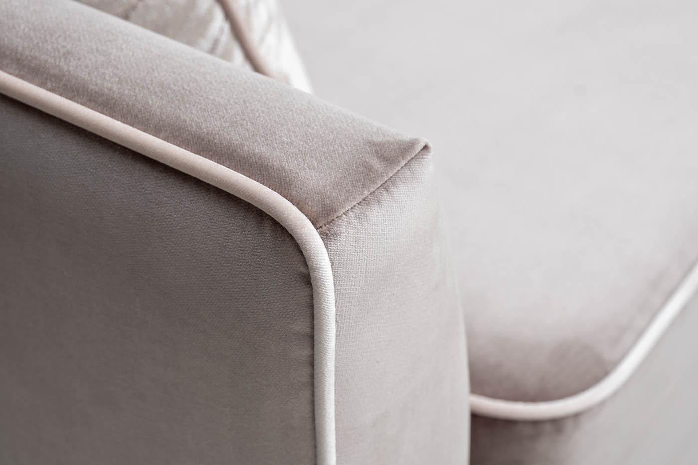 Материал - обивка - вельвет(100% полиэстер/80% полиэстер, 20% вискоза), каркас - дерево, опоры-пластик, наполнитель ППУ
