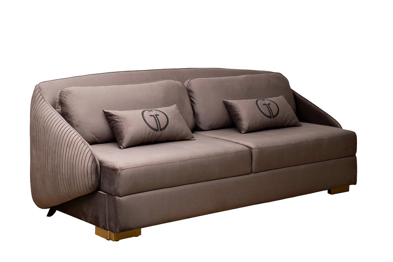 description-full - Трехместный раскладной диван PALAZZO, выполненный в сером оттенке, гармонично дополнит гостиную, холл или комнату для гостей. Это функциональная, практичная и удобная мягкая мебель, оснащенная механизмом трансформации «пума». Уютный диван с подушками для дневных посиделок всей семьей можно разложить в комфортабельную кровать для ночного отдыха. Красивая обивка устойчивая к истиранию, износу, прочная, имеет презентабельный внешний вид, простая в уходе. Диван трехместный раскладной Palazzo 240М, разработка студии GARDA STUDIO. Габариты дивана: длина- 2400мм, глубина- 1050мм, высота- 950мм. Габариты сиденья дивана: длина-1770мм, глубина-550мм, высота- 460мм. Механизм трансформации- ПУМА. Габариты спального места:-1360мм*2100мм. Деревянные опоры, высота 80мм. В стандартном исполнении диван представлен в тканях Романтика 504(основная) и Романтика 504,плисированная ткань(спинка), передние опоры цвет золото. В комплект дивана входят 2 прямоугольные подушки спинки+ и 2 прямоугольные подушки у...
