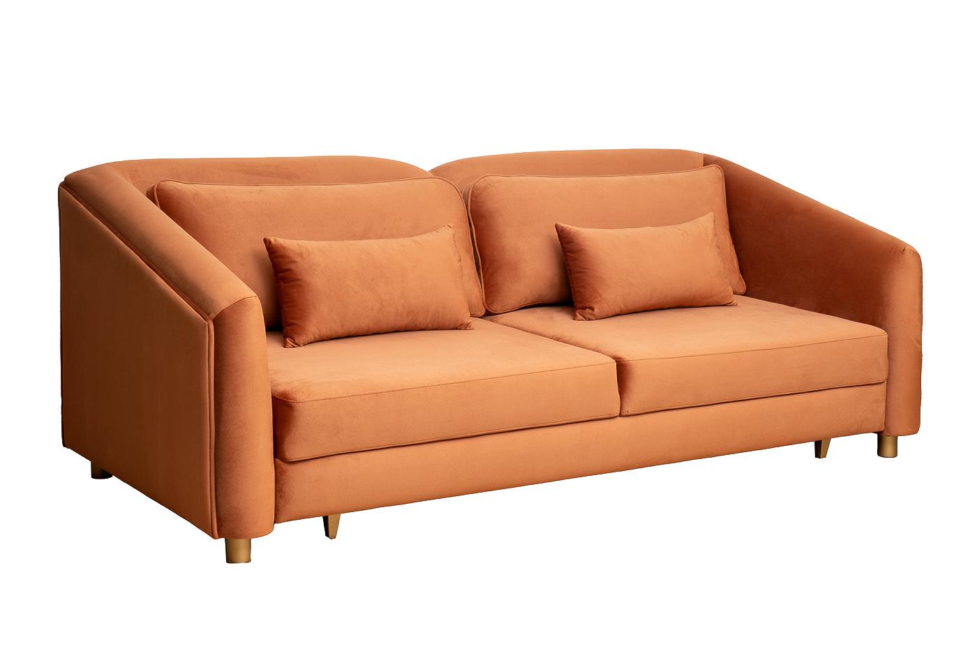 description-full - Удобный трехместный раскладной диван Треви(Trevi) идеально впишется в интерьер гостиной, холла, гостевой комнаты. Благодаря надежному механизму трансформации «Пума» он за минуту превращается в двуспальную кровать. Для удобного положения спины и комфортного отдыха терракотовый диван дополнен мягкими декоративными подушками. Мебель уместно смотрится в изысканных интерьерах, оформленных в стилистике арт-деко, модерн, неоклассика. Собственное производство позволяет изготовить дизайнерский диван в любом другом варианте обивки. Диван трехместный раскладной Треви(Trevi) 230М, разработка дизайн-студии Garda Decor. Габариты дивана: длина- 2320мм, глубина- 1030мм, высота- 880мм. Габариты сиденья дивана: длина-1790мм, глубина-600мм, высота- 400мм. Механизм трансформации- ПУМА. Габариты спального места: 1400*1980мм. Деревянные опоры, высота 80мм.В стандартном варианте диван выполнен в ткани коллекции Garda Decor- велюр Колтон(Colton)006 .Передние опоры золото.