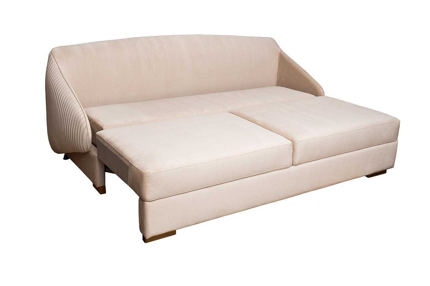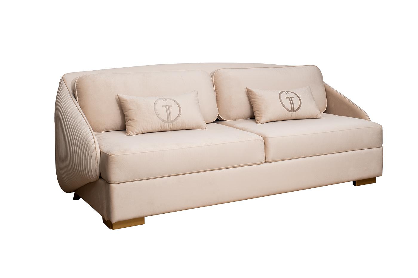 description-full - Роскошный диван PALAZZO станет главным украшением гостиной, холла, лаунж-зоны или комнаты для гостей. Он сочетает в себе элегантный дизайн, повышенное удобство и практичность. За счет механизма трансформации «пума» модель легко превращается в комфортное спальное место для двух человек. Эффектный диван бежевого цвета органично вписывается как в темные, так и в светлые современные интерьеры, в стилистику ар-деко, неоклассика, контемпорари, сканди. Диван трехместный раскладной Palazzo 240М, разработка студии GARDA STUDIO. Габариты дивана: длина- 2400мм, глубина- 1050мм, высота- 950мм. Габариты сиденья дивана: длина-1770мм, глубина-550мм, высота- 460мм. Механизм трансформации- ПУМА. Габариты спального места: 2100мм*1360мм. Деревянные опоры, высота 80мм. В стандартном исполнении диван представлен в тканях Романтика 07(основная) и Романтика 07,плисированная ткань(спинка), передние опоры цвет золото. В комплект дивана входят 2 прямоугольные подушки спинки+ и 2 прямоугольные подушки у локтей ...