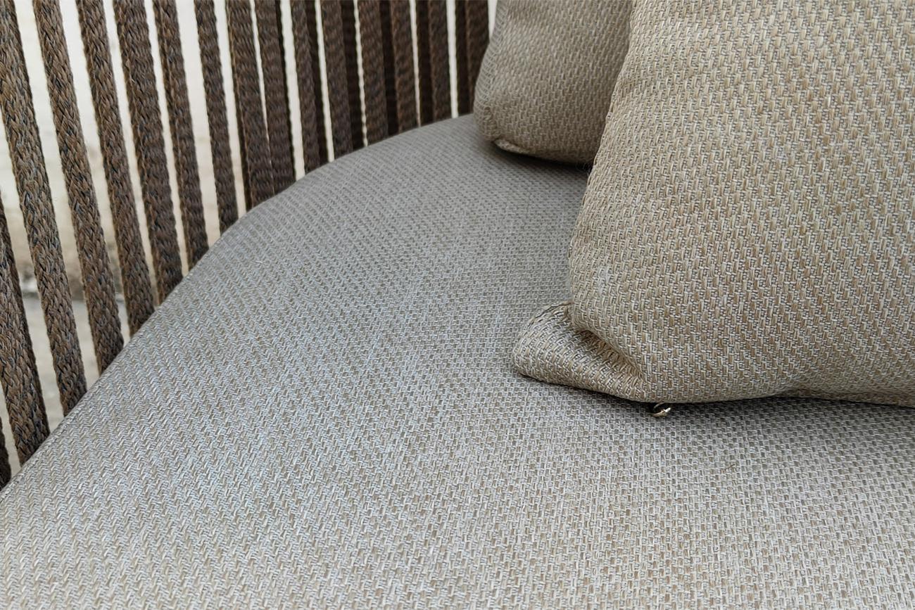 Уличный диван изготовлен из устойчивых к погодным условиям материалов. Cъемные подушки выполнены из специальной уличной ткани с водоотталкивающими свойствами OLEFIN тайваньского производства. Светлая ткань не будет сильно нагреваться на солнце и выцветать...