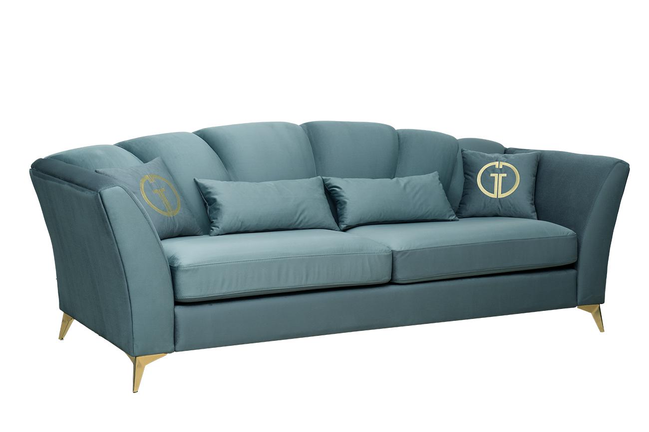 Диван Garda Decor Диван Annette трехместный без мех,велюр бирюз.Colt1004/зол 250*100*95 арт. ANNETTE-3-2K-Colt1004