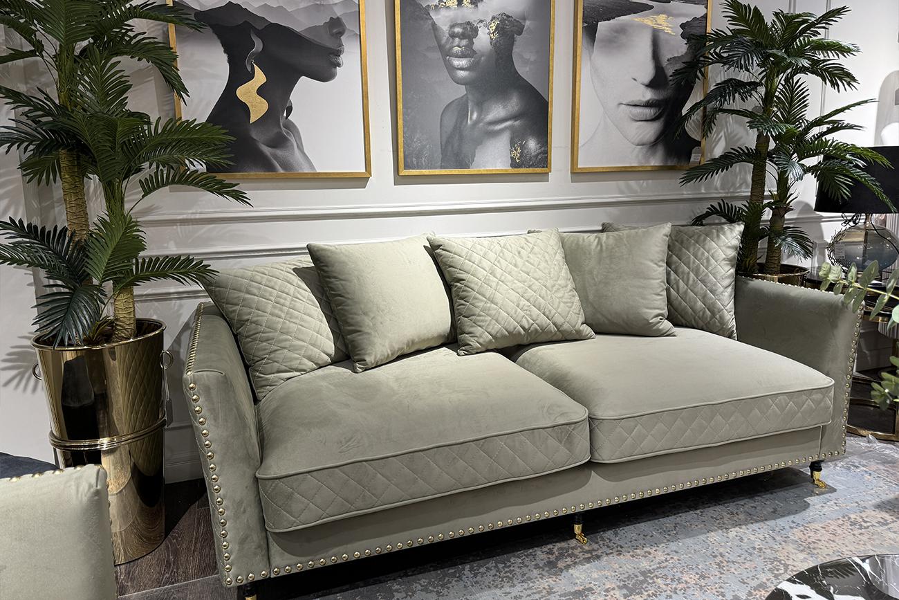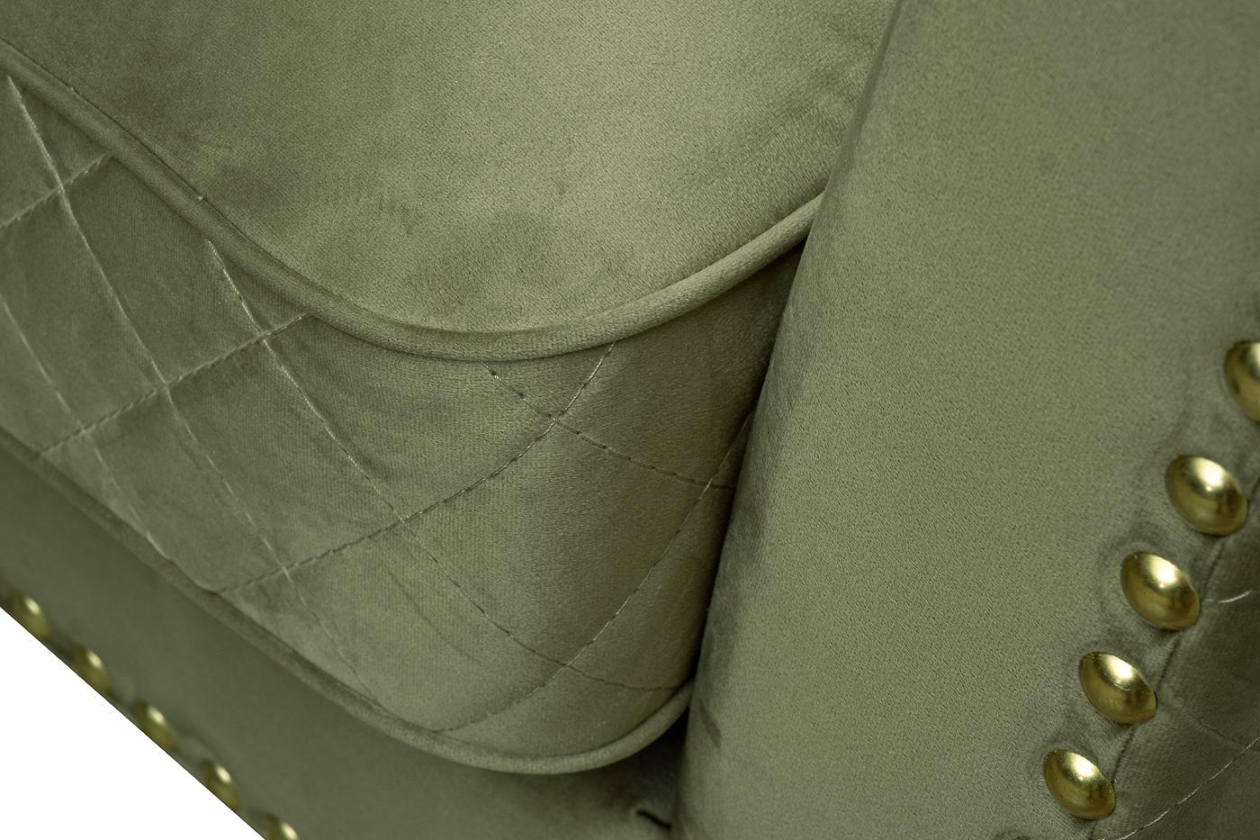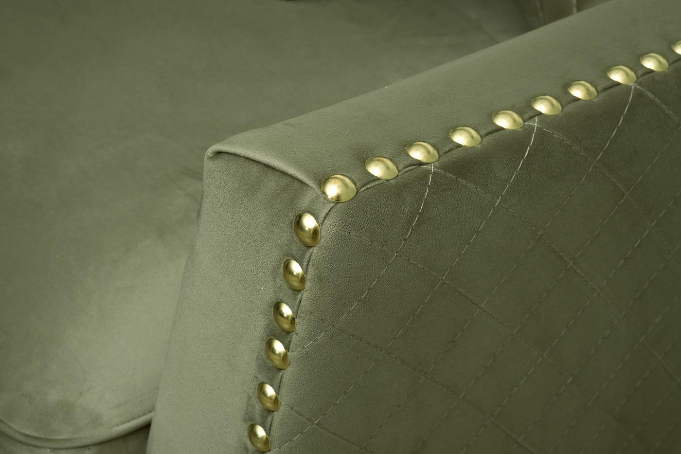 description-full - Шикарный диван SORRENTO в оливковом цвете способен повысить статус своих владельцев и придать помещению аристократичности. В эту модель дизайнеры вложили максимум роскошества и шика: велюровая обивка, золотые колесики оригинальной формы, каркас из дерева и декор из гвоздей в цвете золото. Используйте велюровый диван для дополнения гостиной, рабочего кабинета или спальни. Для повышения комфорта во время отдыха, изделие дополнено мягкими подушками с эффектной прострочкой. Компания Garda Decor предлагает диван на заказ в Москве с доставкой. В стандартном исполнении: обивка - велюр из коллекции тканей Garda Decor- Colt1002-OLIV, цвет ножек - 4, колесная опора -золото, гвозди - золотоа большие.
