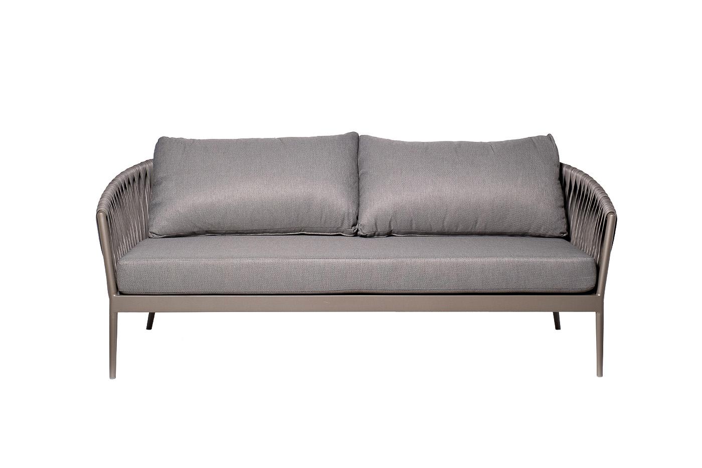 Красивый и удобный уличный двухместный диван "Муза" подарит прекрасные часы отдыха на свежем воздухе. Сварной алюминиевый каркас, окрашенный в цвет шампань по особой технологии, чрезвычайно устойчив к появлению ржавчины и сколов. Ленточная оплетка серебря...