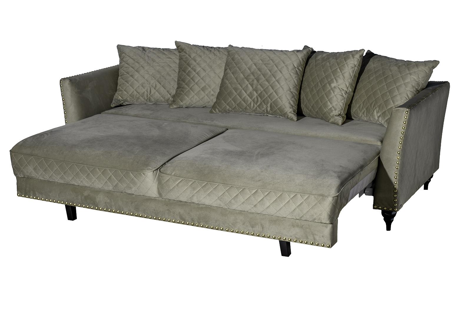 description-full - Стильный раскладной диван для гостиной SORRENTO воплощает в себе аристократическую элегантность и максимальный комфорт. Мягкая спинка с подлокотниками и декоративные подушки делают отдых уютным и красивым. За счет надежной системы трансформации «пума», трехместный диван легко становится удобным спальным местом для двоих человек и гарантирует здоровый сон. Собственное мебельное производство Garda Decor позволяет купить диван в Москве с изменениями в дизайне. Каркас дивана выполнен из калиброванного деревянного бруса 1 категории; в основании дивана - высококачественная фанера из натуральной березы и эластичные ремни. Механизм трансформации - Пума. Высота спинки (габаритная с подушками) - 86см. Ширина подлокотника 15см. В комплекте - 5 подушек спинки 57*65см. В стандартном исполнении: обивка в ткани из коллекции Garda Decor- велюр Colt1002-OLIV, цвет ножек - 4, колесная опора - нет, гвозди большие, цвет золото.