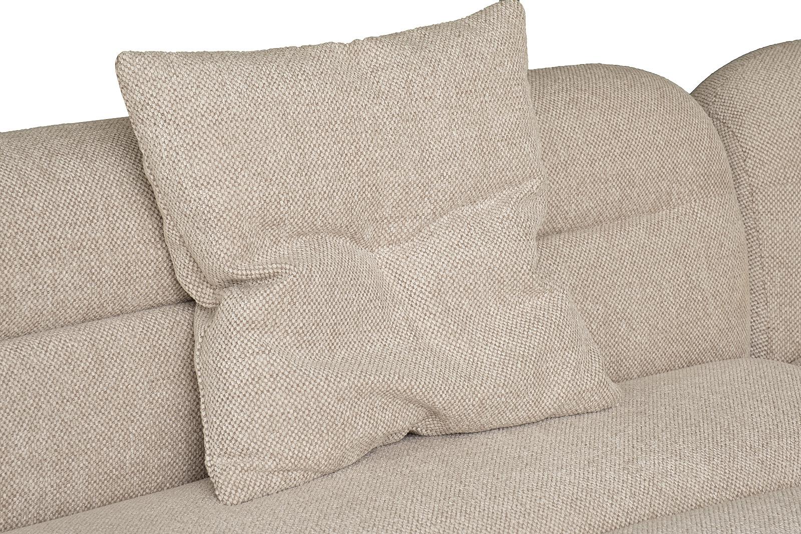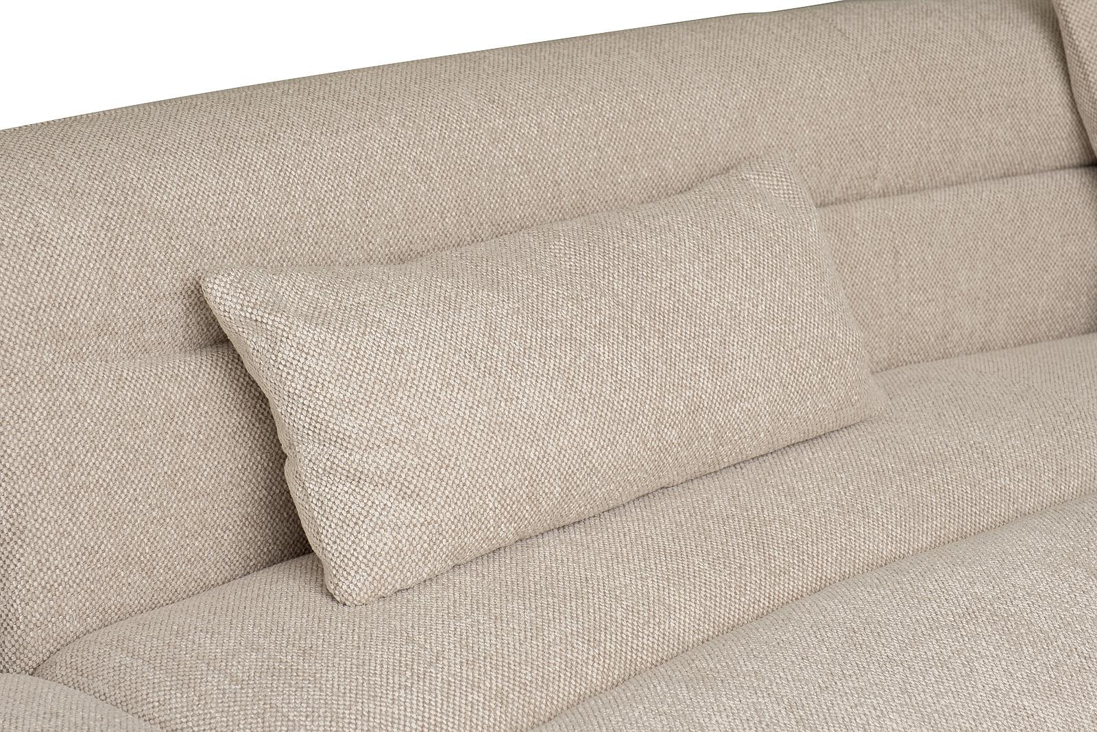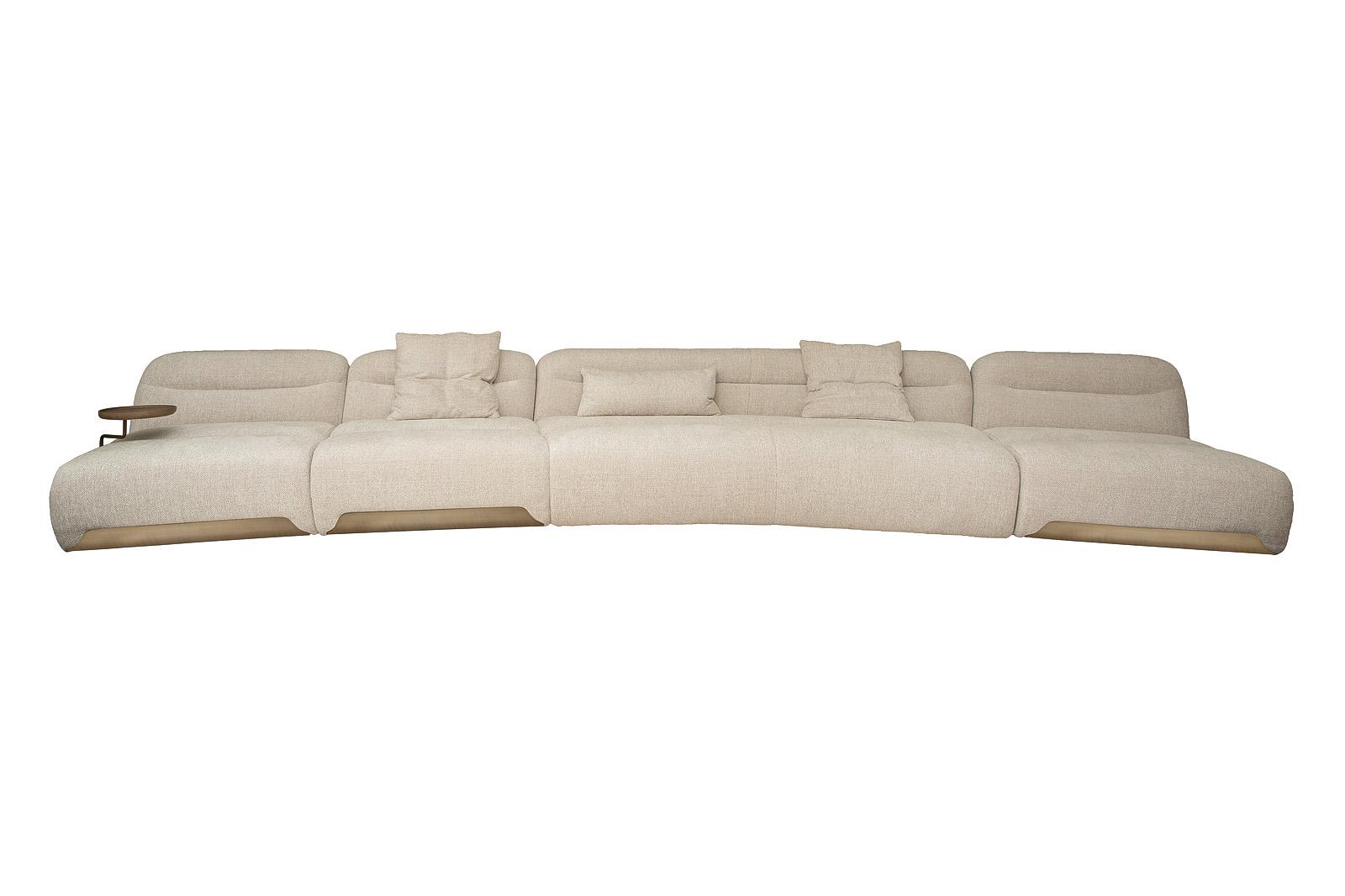 Модульный диван с изогнутой формой — настоящий объект современного мебельного искусства в вашем интерьере. Обивка из шероховатой плетеной ткани в оттенке топлёного молока придаёт модели ощущение тактильной роскоши. Благодаря встроенному столику и эргономи...