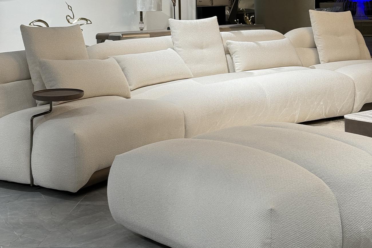 description-full - Модульный диван с изогнутой формой — настоящий объект современного мебельного искусства в вашем интерьере. Обивка из шероховатой плетеной ткани в оттенке топлёного молока придаёт модели ощущение тактильной роскоши. Благодаря встроенному столику и эргономичной спинке, этот дизайнерский диван идеально подходит для отдыха, чтения или вечерних посиделок. Актуальная форма и выразительная геометрия делают его не только зоной комфорта, но и стильным центром внимания в современной гостиной.